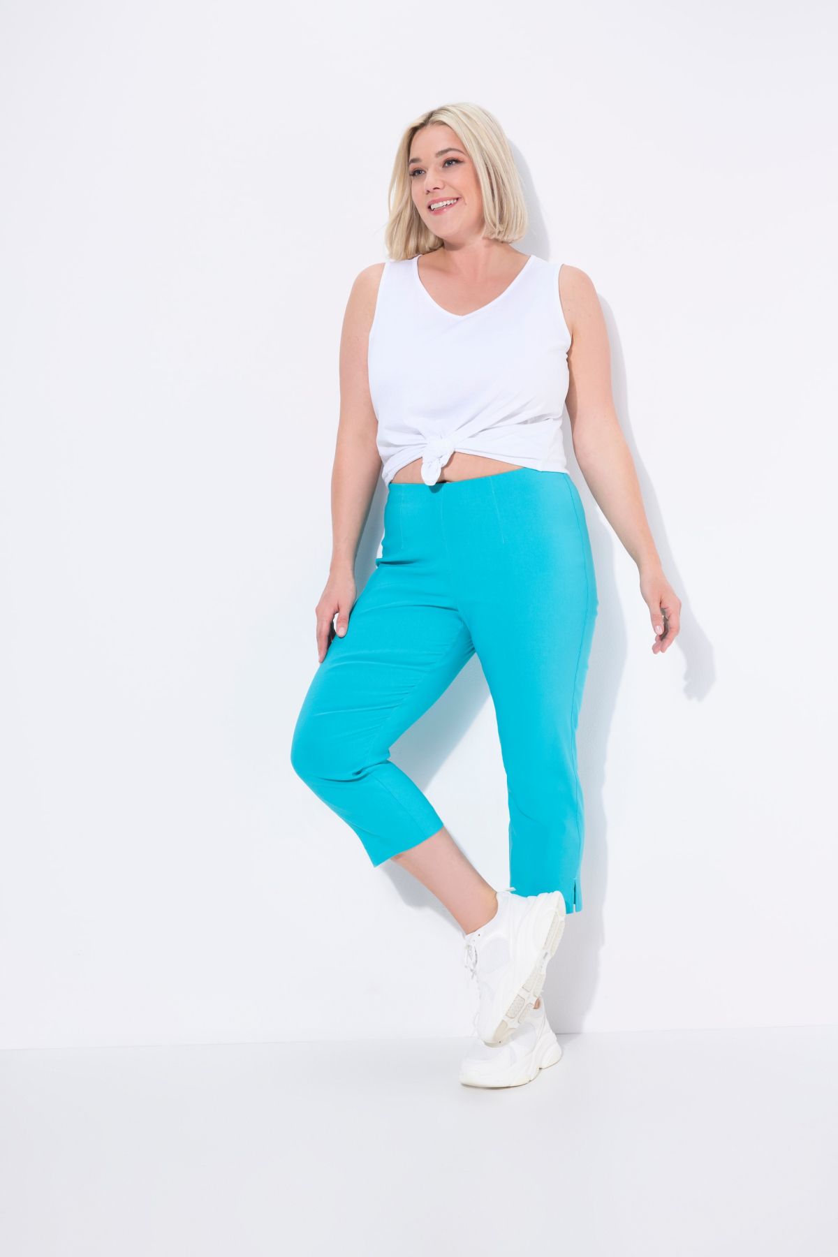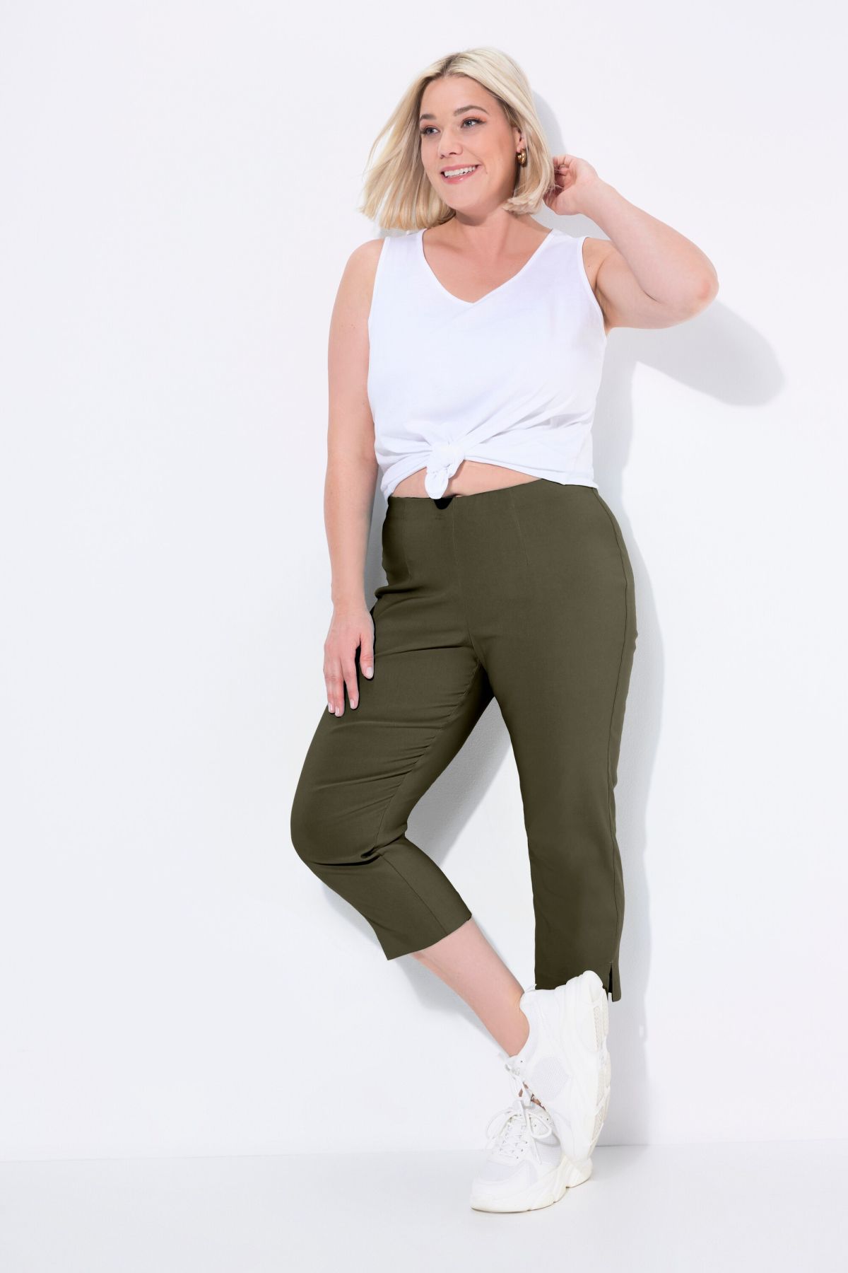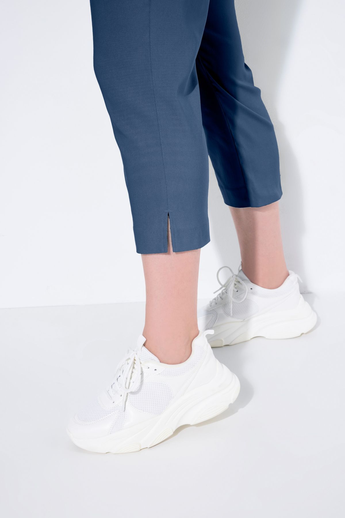Le pantalon, longueur aux mollets. En bengaline lisse et élastique, agréable à porter et très facile à combiner. Coupe confort avec jambe droite et ceinture élastique qui ne comprime pas. Petite fente au bas des jambes.& 10;<br> & 10;<br>