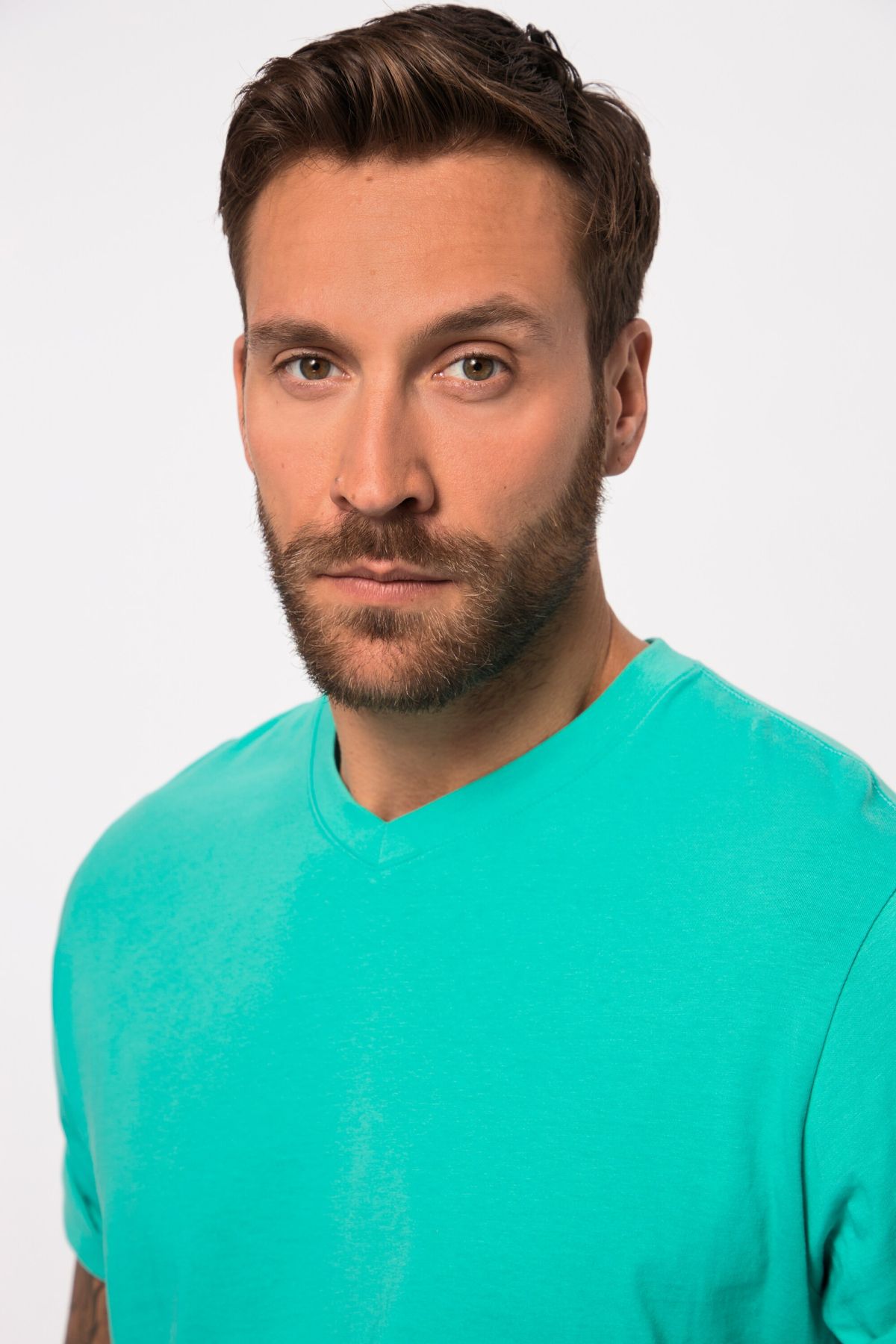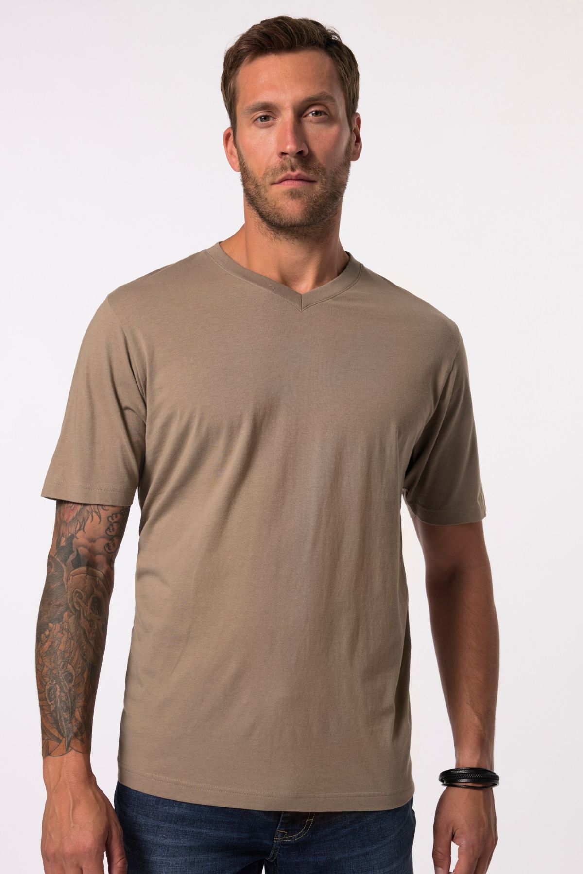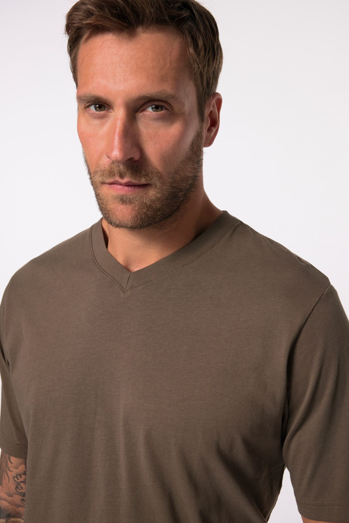 T-shirt V, super facile à assortir! Modèle Basic en jersey de coton haut de gamme. Agréable encolure en V, manches courtes. Liberté de mouvement optimale assurée en toutes tailles. JP1880 - for real men only!& 10;<br>