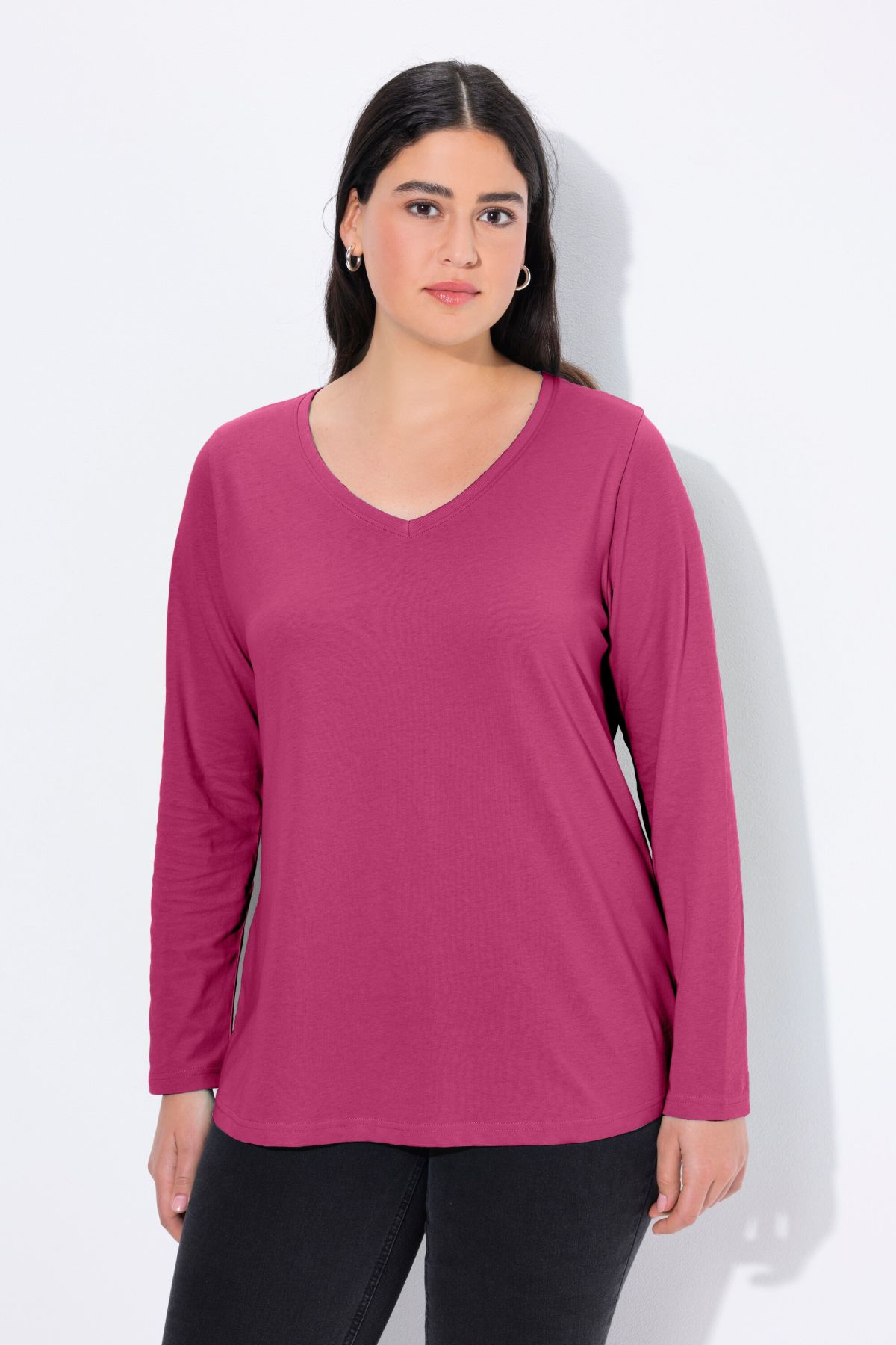 T-shirt V manches longues, encolure V. Coupe étroite, parfait en sous-pull.& 10;<br> <br /><br /><img style= float: left; margin-right: 20px; margin-buttom: 50px; cursor: pointer; onclick= javascript:window.location='/contenu/sustainability/' alt= Développement durable src= https://images.ullapopken.de/cms/de/de/service/RSWS_Herz.png /> Le cœur « C’EST BIEN - CONTINUONS « indique que le vêtement est réalisé en partie ou entièrement de façon durable.<br /> <br />& 10;<br>