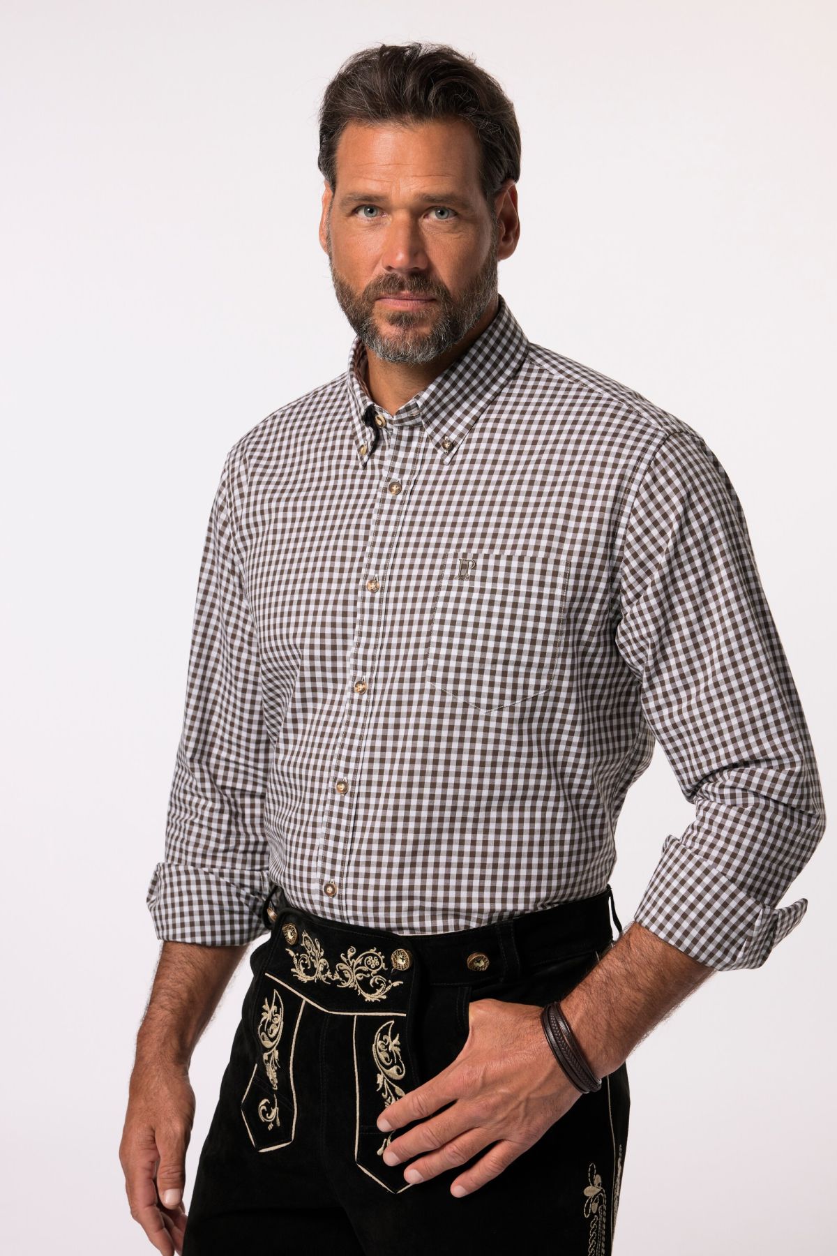Chemise à carreaux traditionnelle JP 1880, manches longues et col à pointes boutonnées, coupe Modern Fit - jusqu'au 8 XL