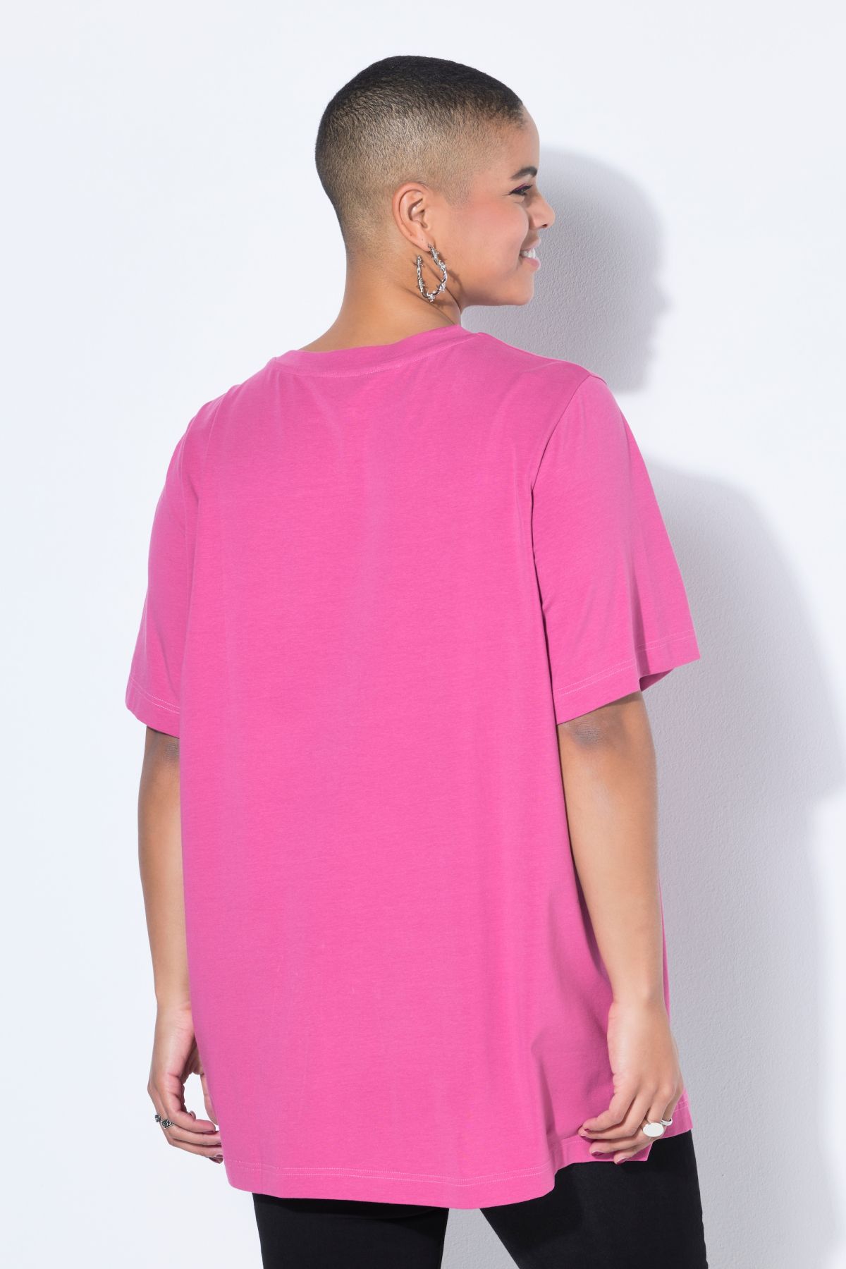 Le T-shirt, ultra long, encolure arrondie, manches courtes.& 10;<br> Studio Untold, c’est le label Young Fashion de Ulla Popken. Le focus est mis sur un message fort en matière de design, de nouvelles coupes, de matières innovantes et de nouvelles influences captivantes issues des clubs et de la rue des métropoles actuelles de la mode. Le label est celui des femmes sûres d'elles qui aiment s’affirmer.& 10;<br>