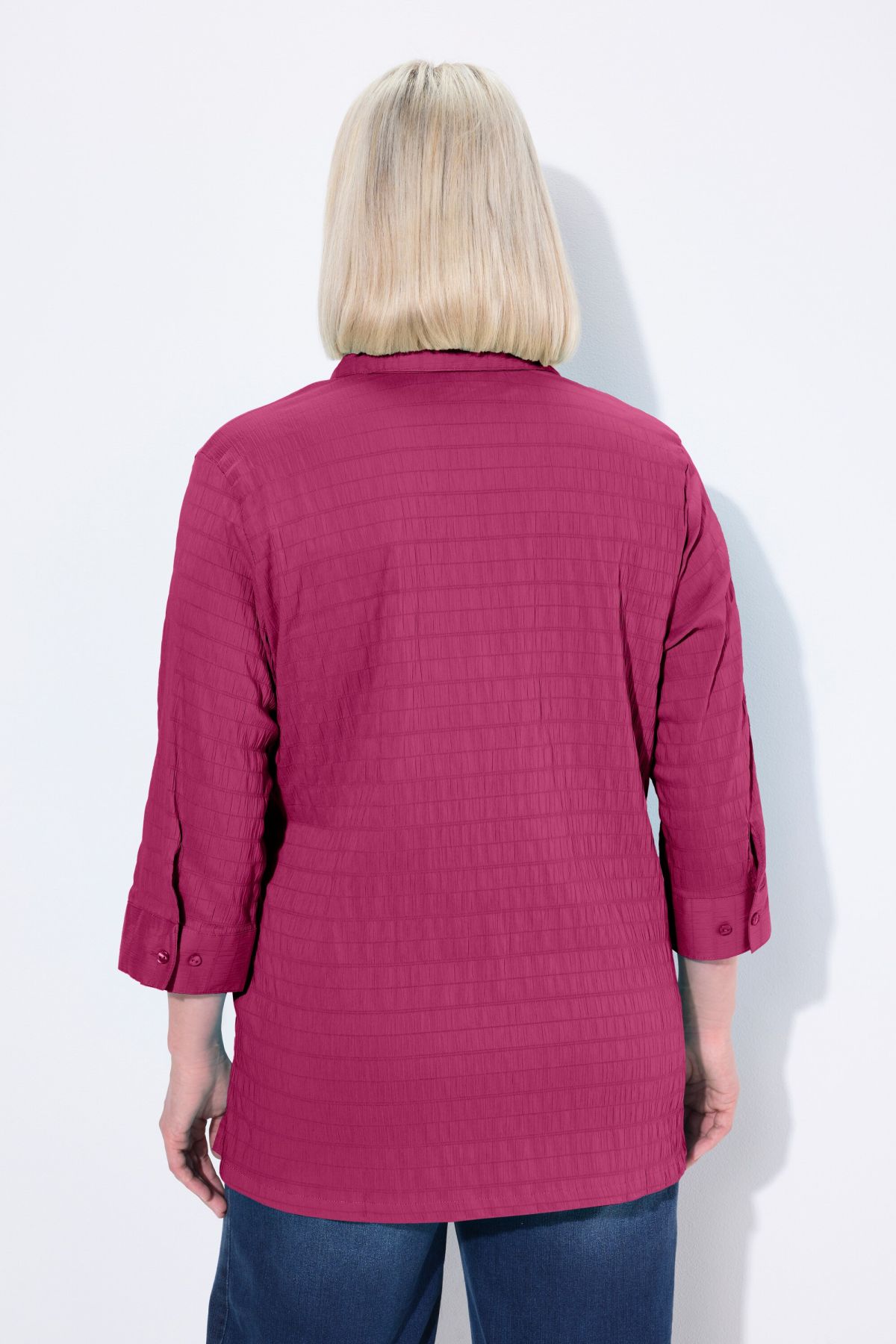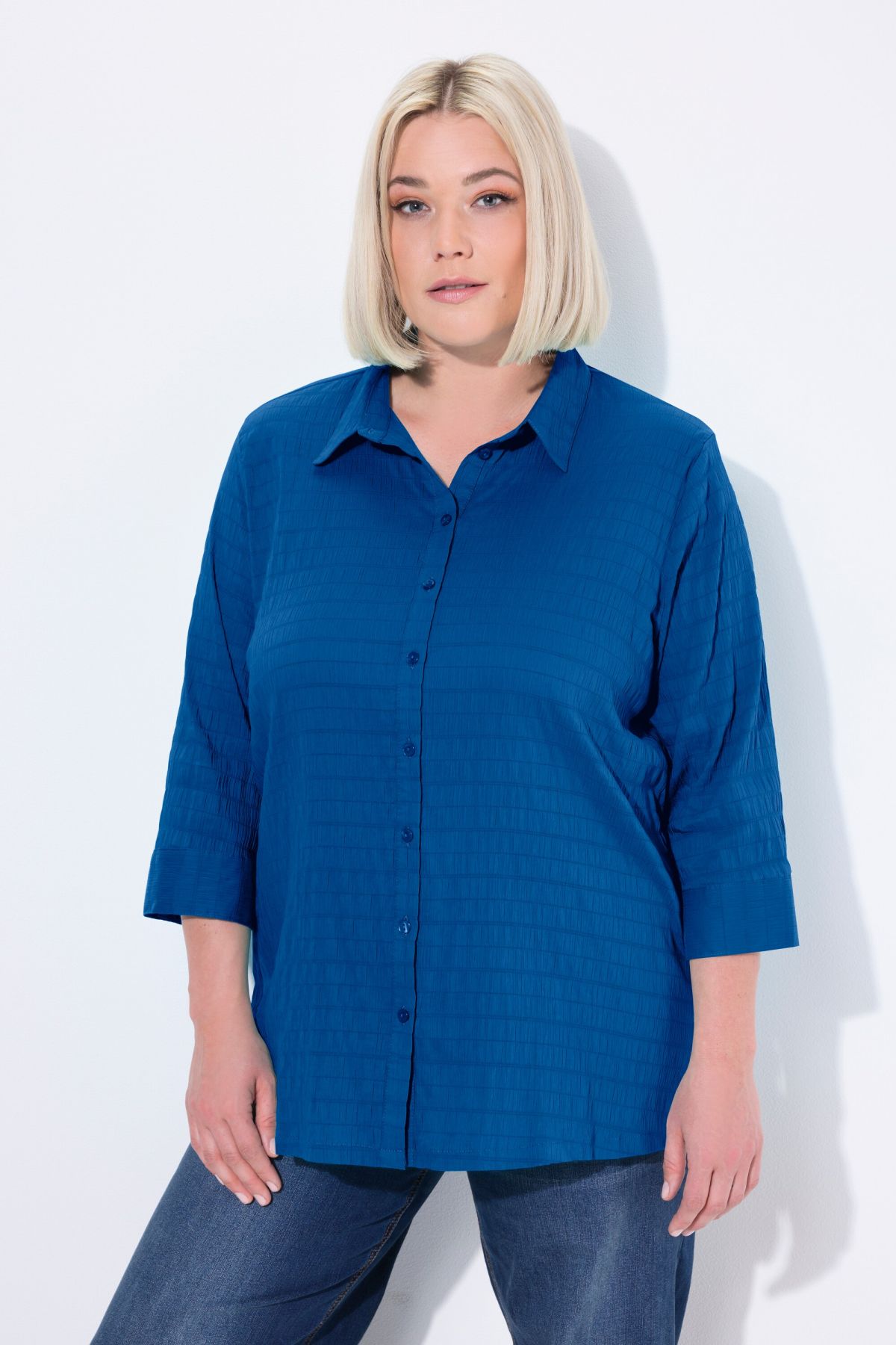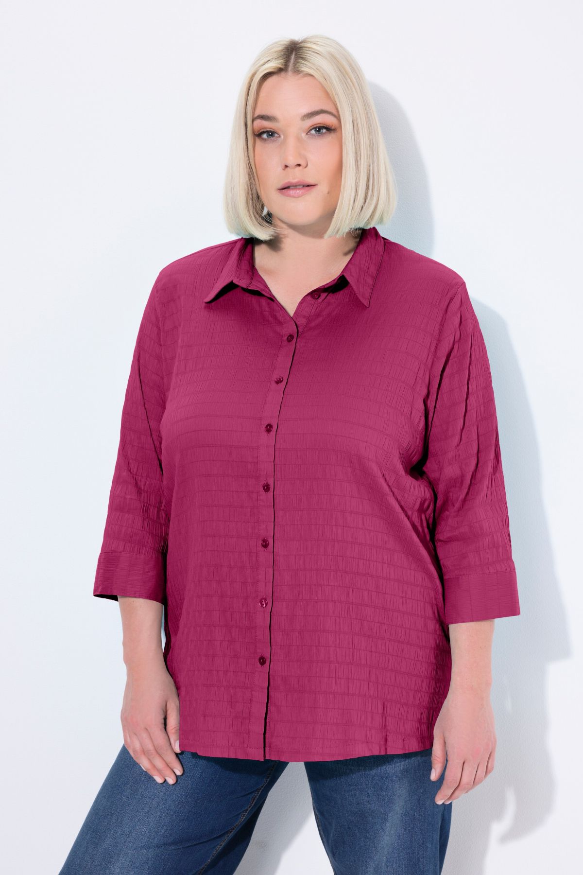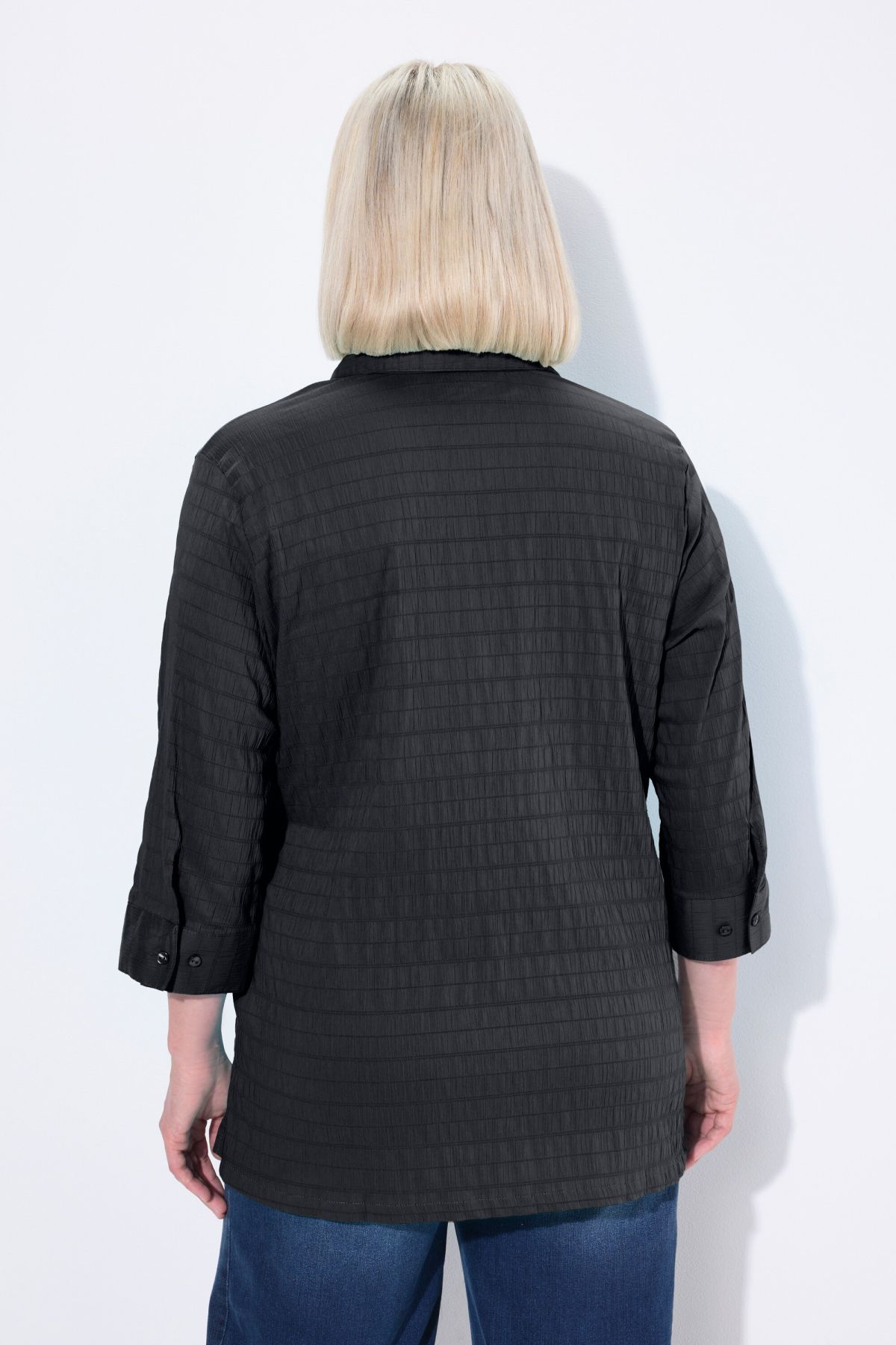 Tissu gaufré de qualité éprouvée, Entretien et repassage faciles, séchage rapide, Col chemise classique, Manches 3/4, Coupe droite, Long. entrej. env. 74-78