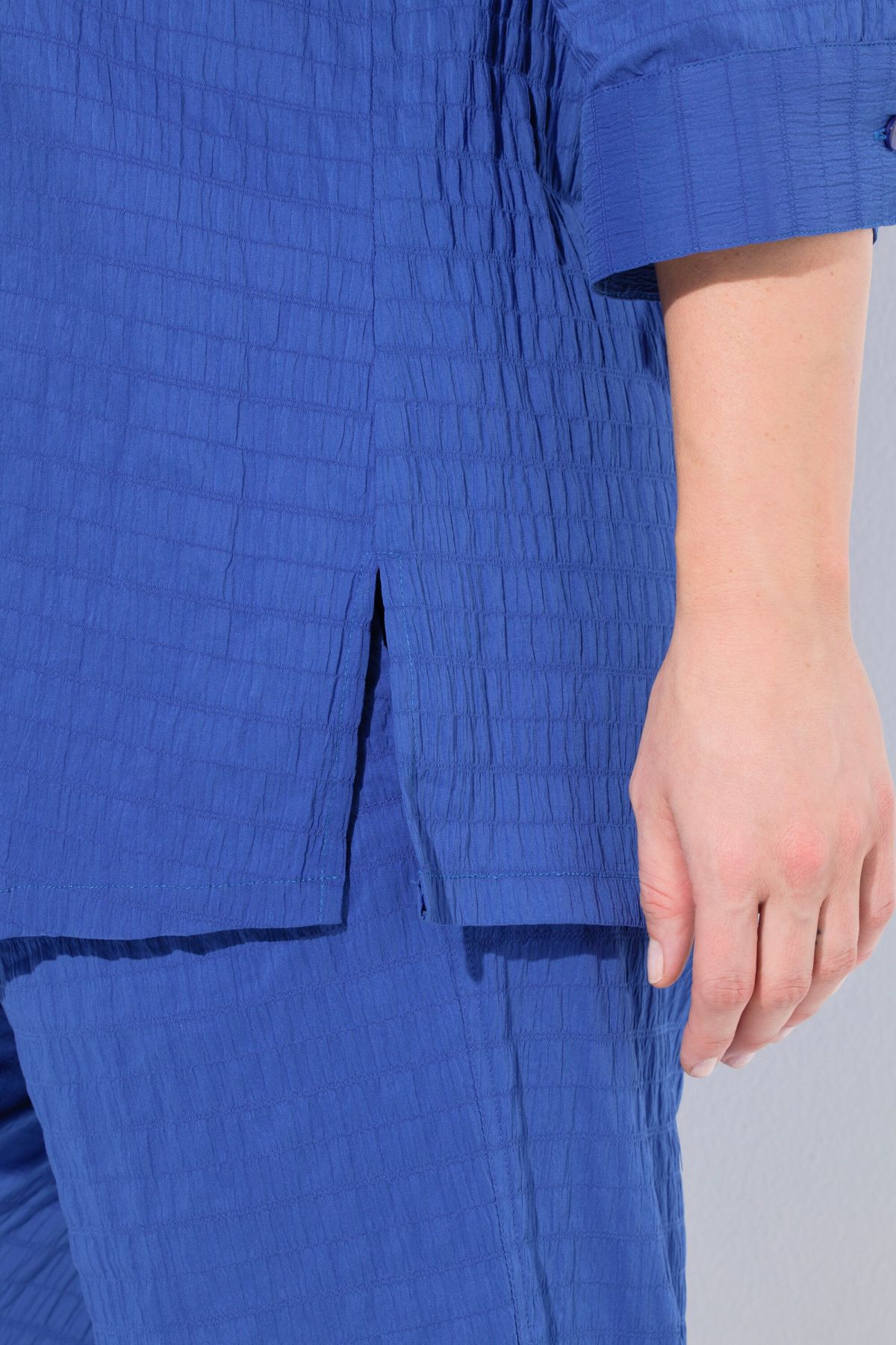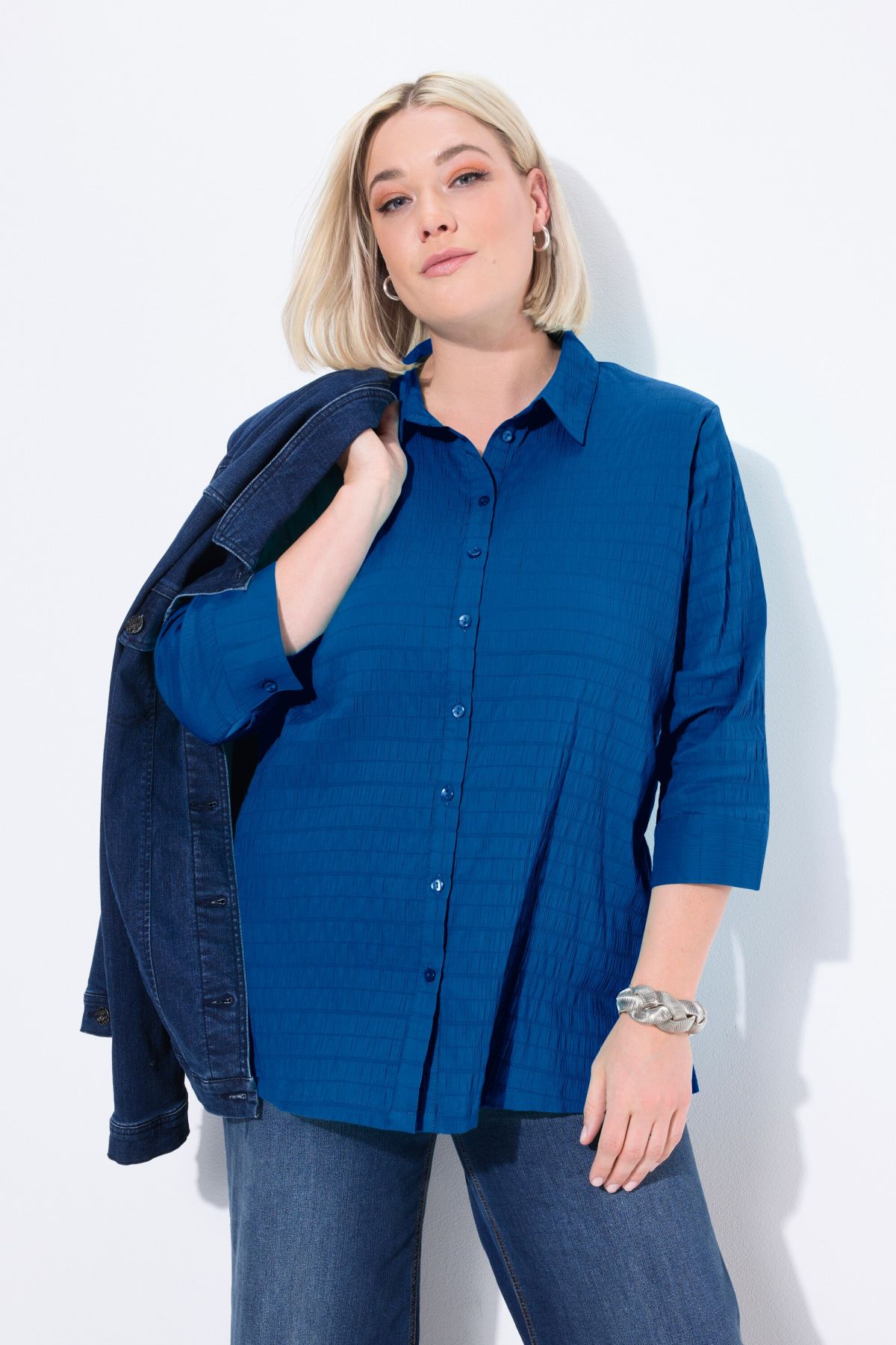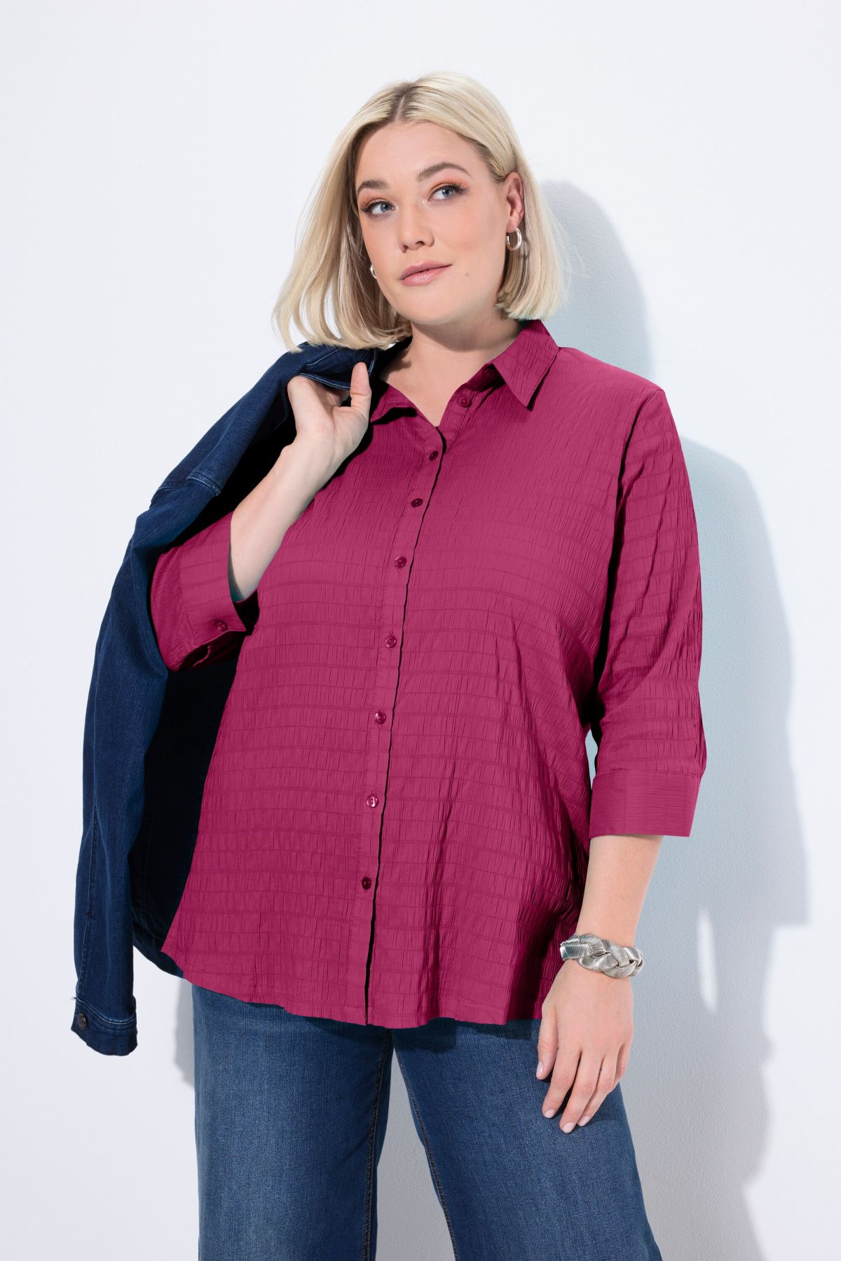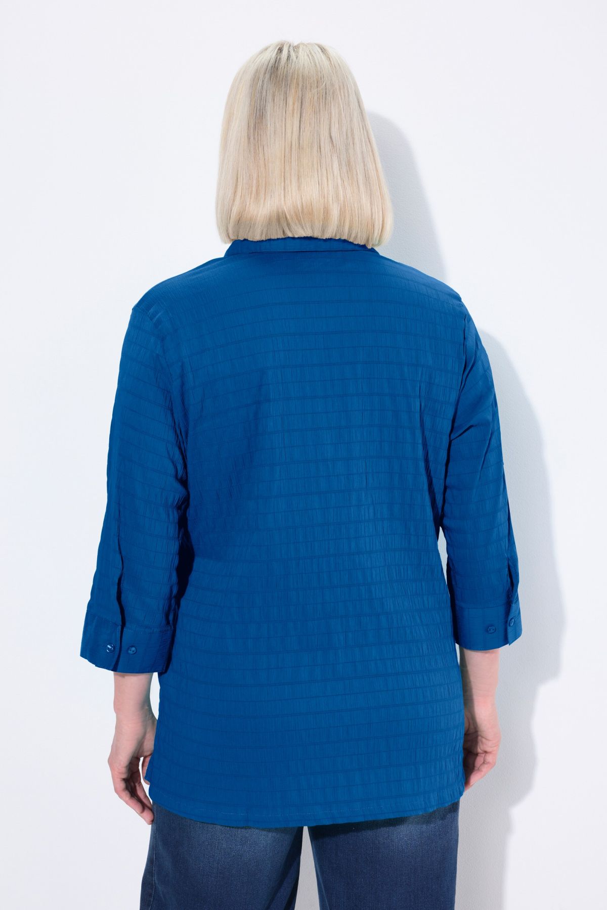 Tissu gaufré de qualité éprouvée, Entretien et repassage faciles, séchage rapide, Col chemise classique, Manches 3/4, Coupe droite, Long. entrej. env. 74-78