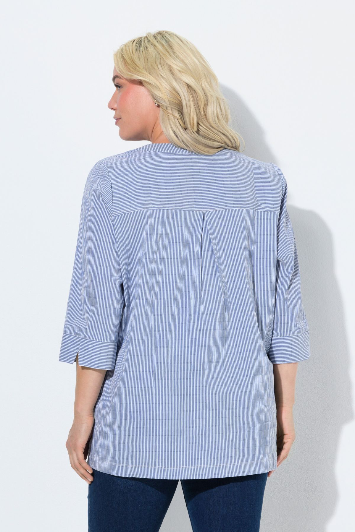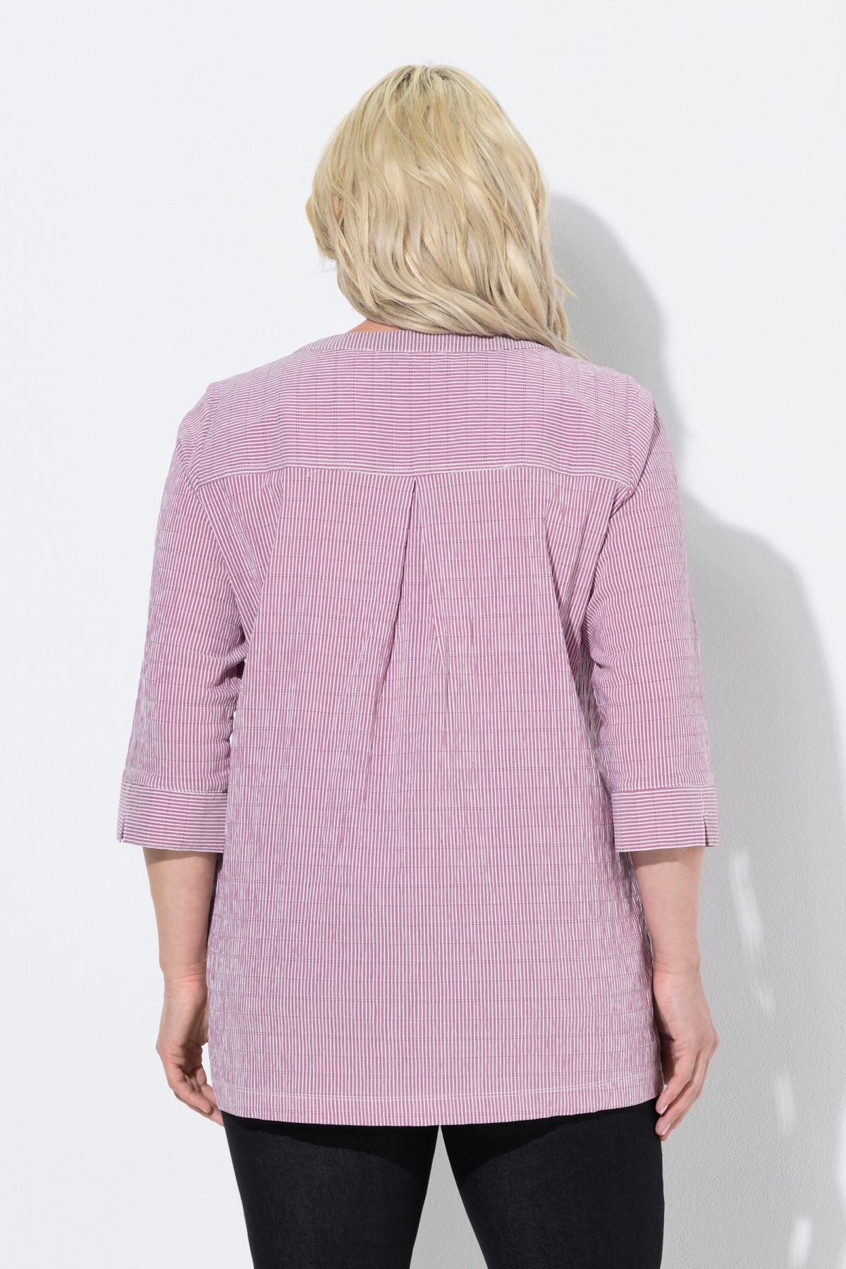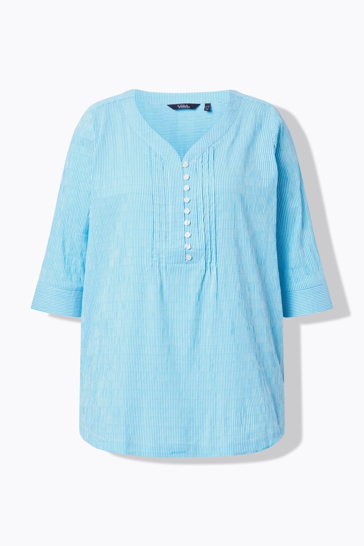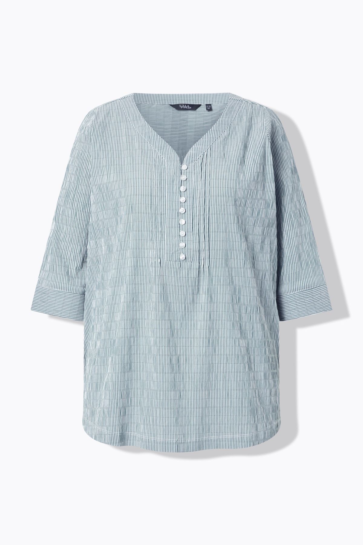 Rayures tendance, Tissu gaufré facile d'entretien, Plis fantaisie sur le devant, Patte de boutonnage sur toute la longueur, Manches 3/4, Long. selon taille env. 76-80