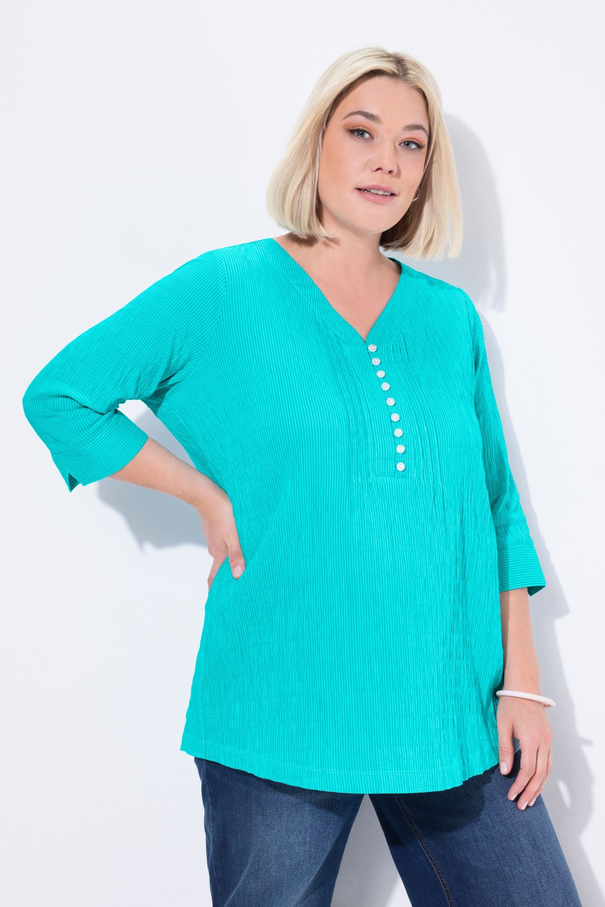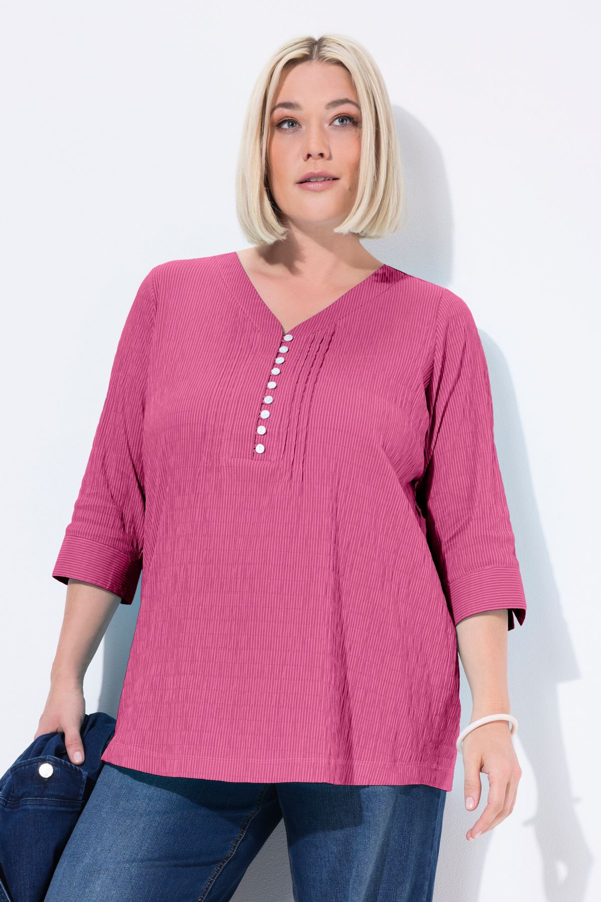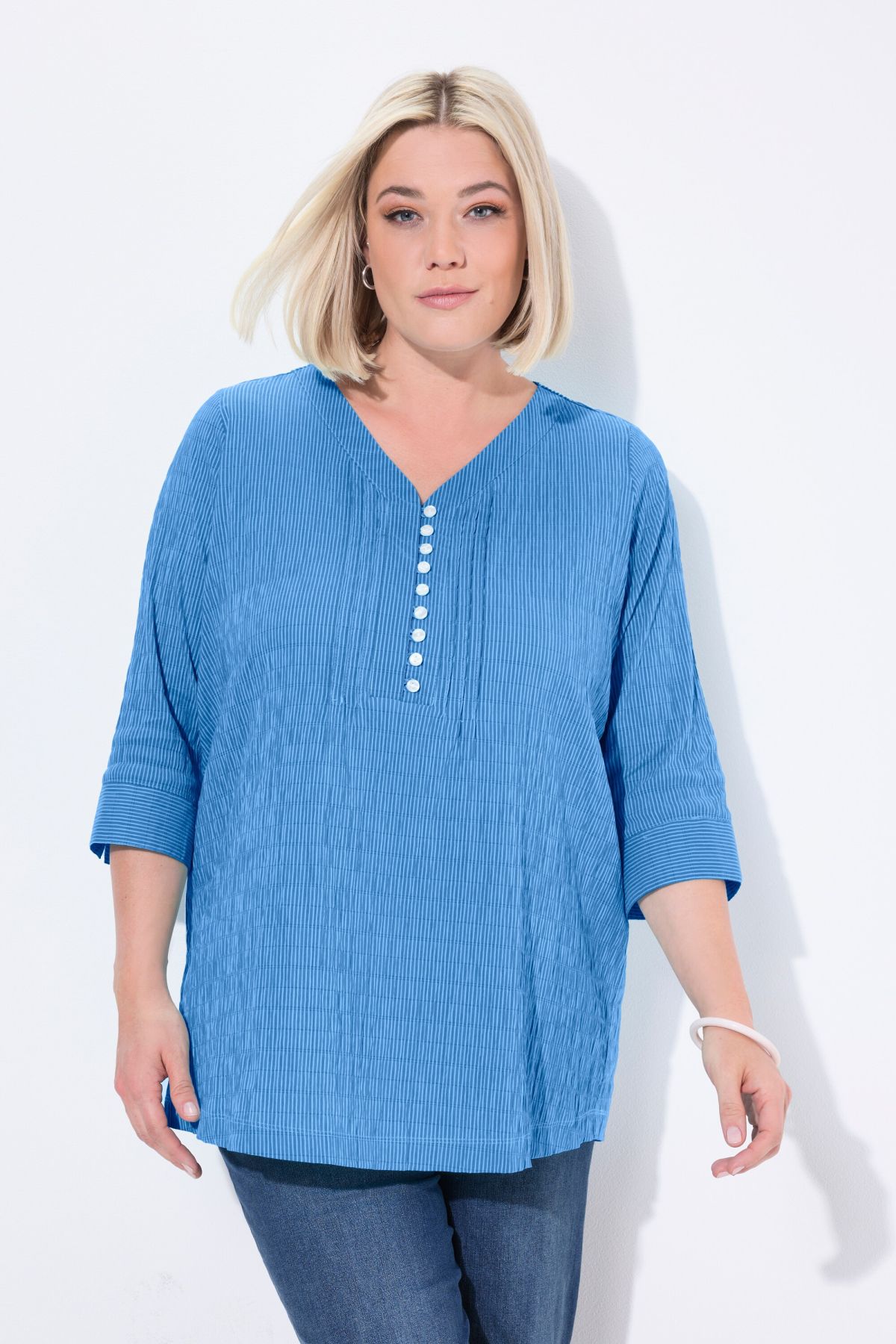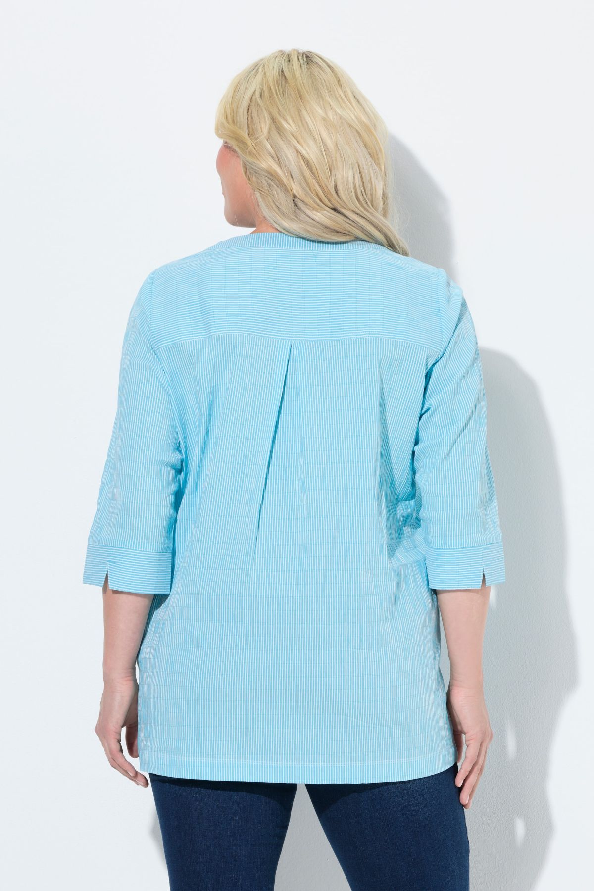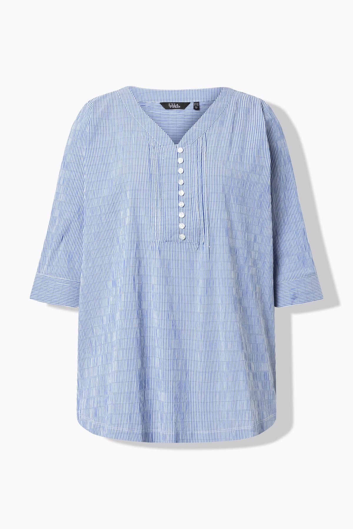 Rayures tendance, Tissu gaufré facile d'entretien, Plis fantaisie sur le devant, Patte de boutonnage sur toute la longueur, Manches 3/4, Long. selon taille env. 76-80
