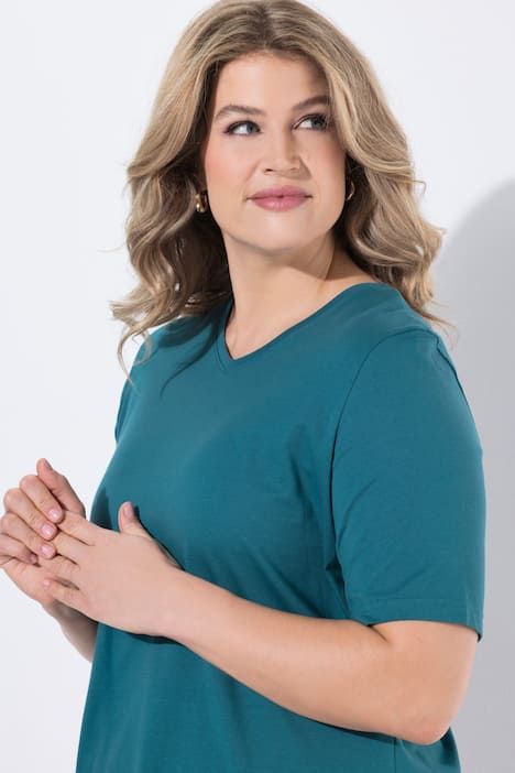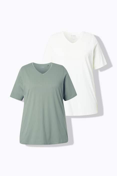 T-shirts Basic en lot de 2, en coton bio doux par nature. Ligne A confortable, encolure V et manches courtes. Bio ; certifié par ECOCERT Greenlife N° de licence 152026.& 10;<br> Le cœur « C’EST BIEN-CONTINUONS » indique que le vêtement est réalisé en partie ou entièrement de manière durable ou particulièrement testé substances nocives. & 10;<br>& 10;<br> & 10;<br>