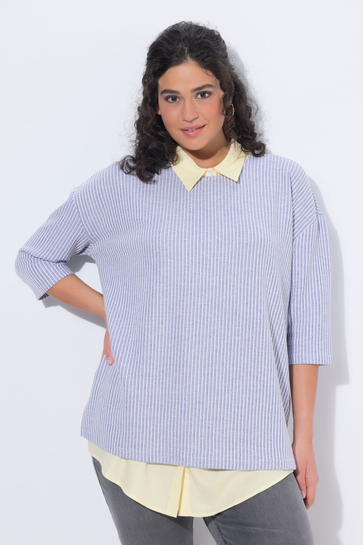 La rallonge de chemisier. Ligne A, ceinture élatiquée, patte de boutonnage, base arrondie et fentes latérales. Look soigné sous un pull, un sweat-shirt ou un T-shirt.& 10;<br> Le cœur « C’EST BIEN – CONTINUONS » indique que le vêtement est réalisé en partie ou entièrement de façon durable ou particulièrement testé aux substances nocives.& 10;<br>