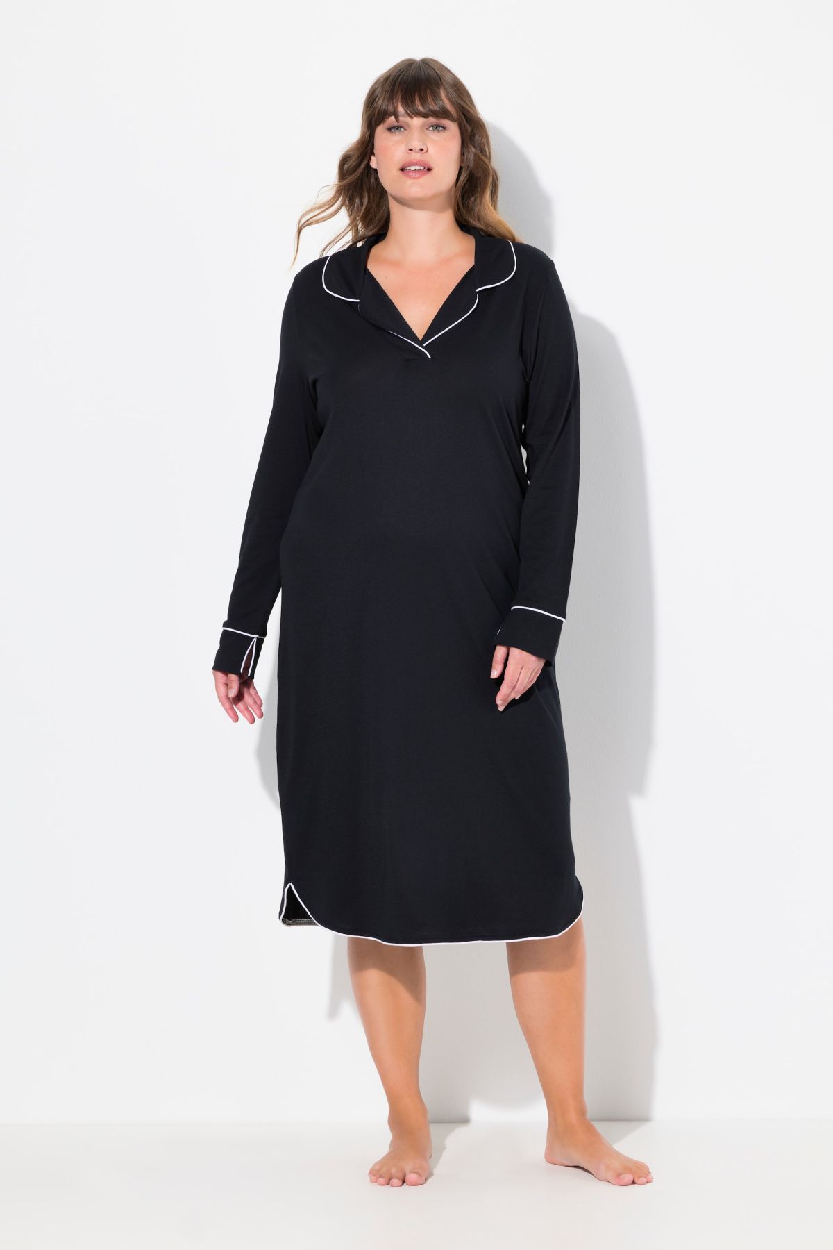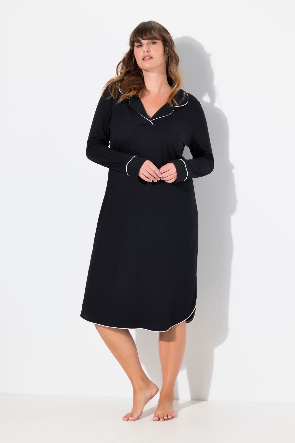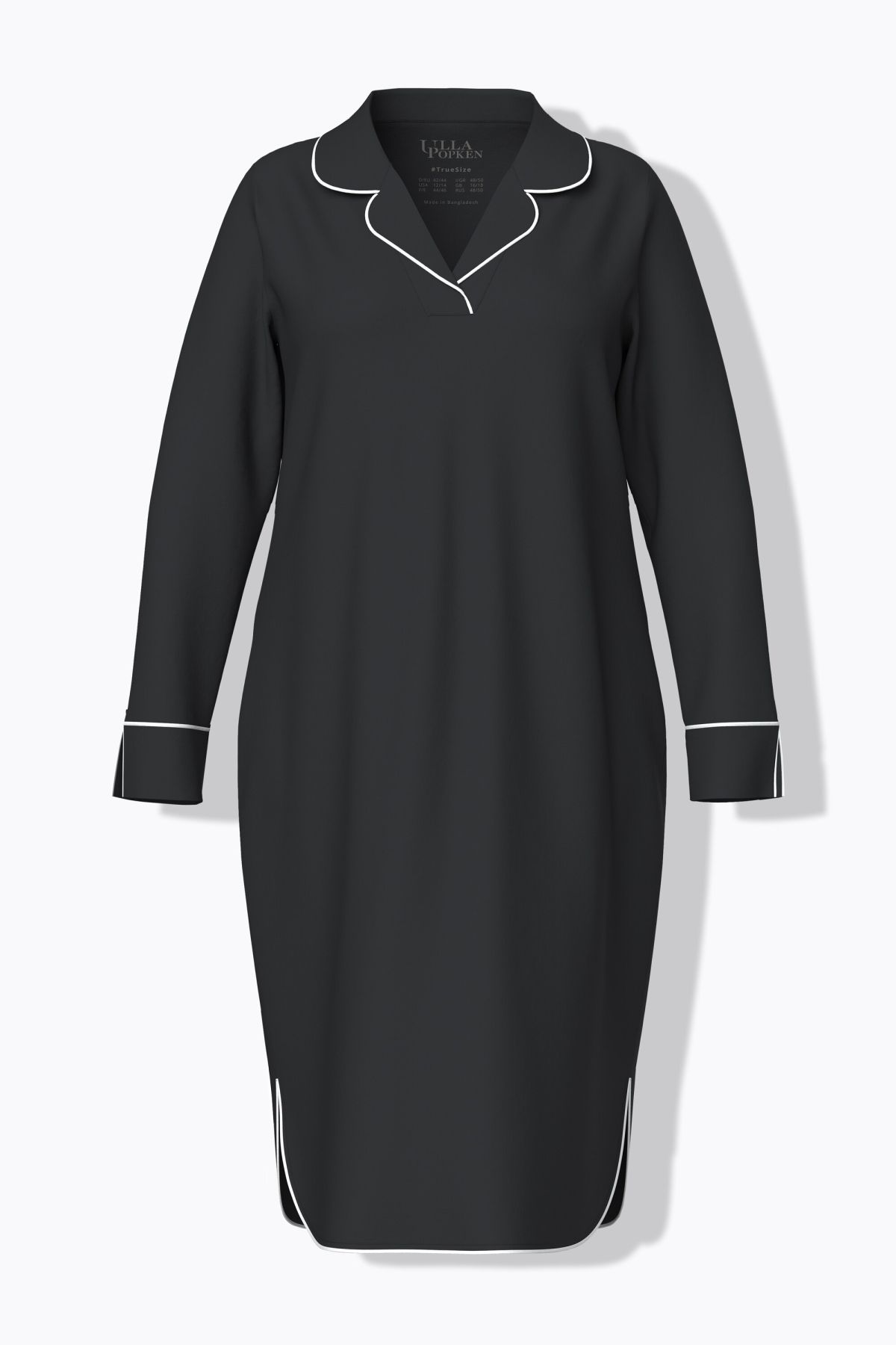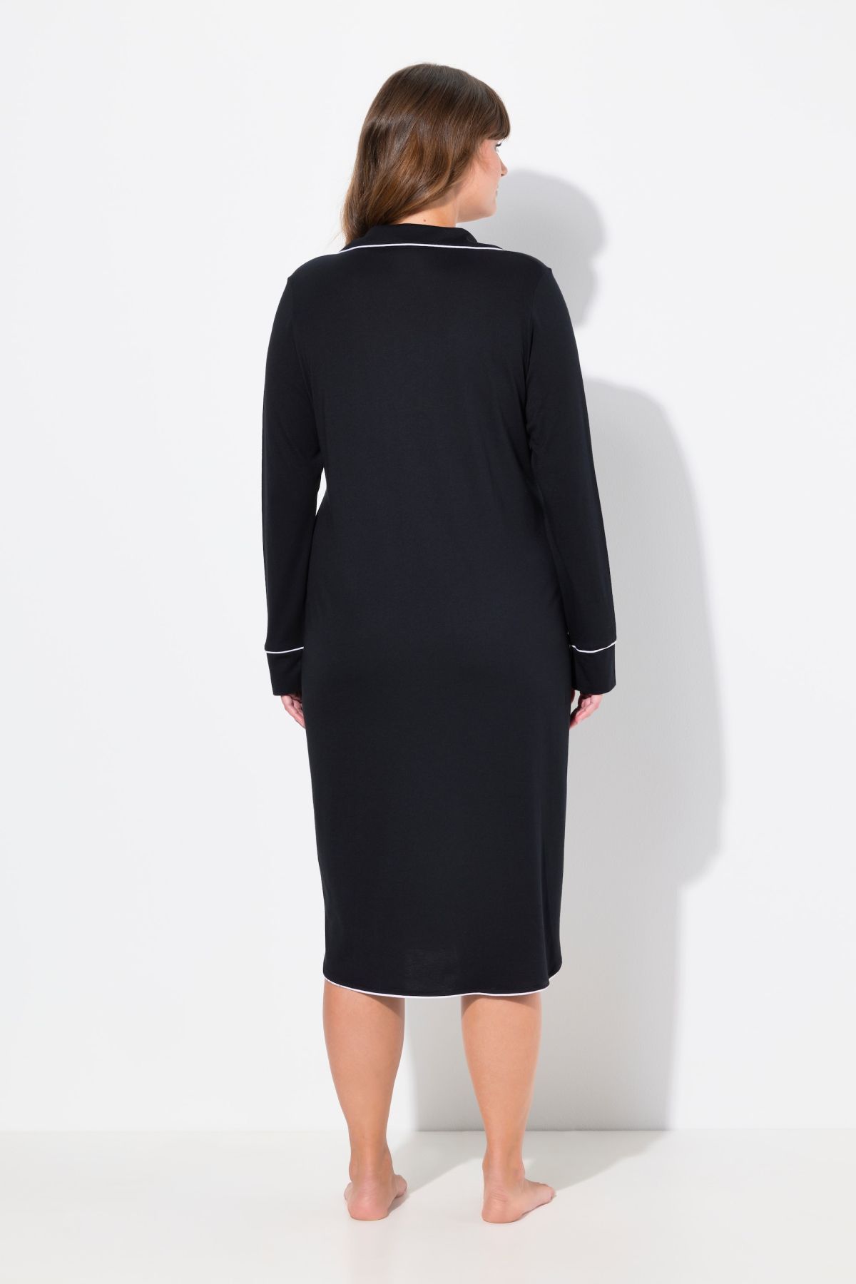 Passepoils fantaisie, Col à revers avec encolure en V, Manches longues, Base arrondie avec fentes sur les côtés, Matière très douce, mélangeant coton et modal, Long. env. 110-115