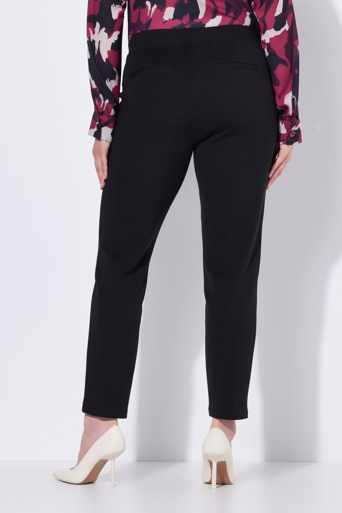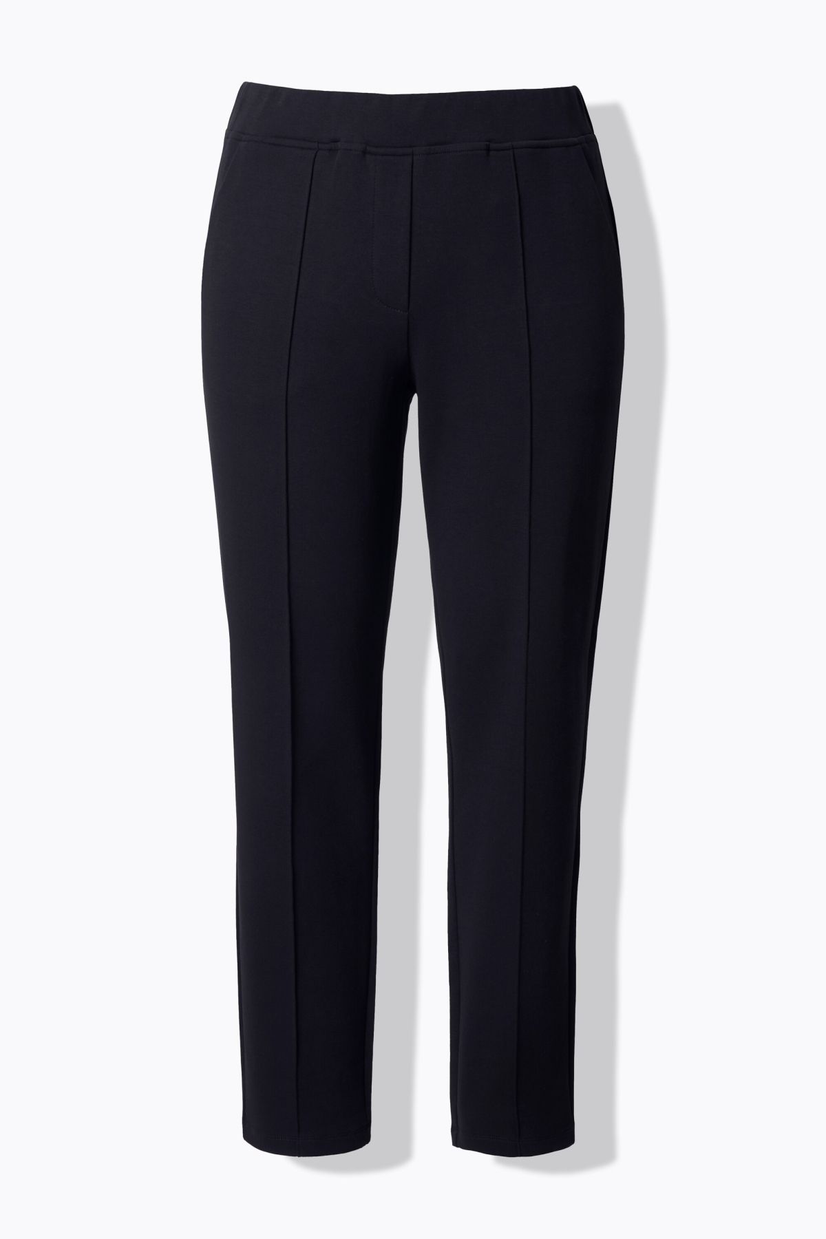 Jersey point de Rome de grande qualité, Jambe légèrement carotte, Plis fantaisie surpiqués, Taille élastique confortable à fausse braguette, Deux poches, Entrej env 76