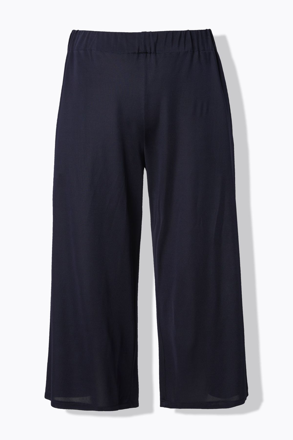 Jambe large, Longueur env. au mollet, Taille élastique confortable, Poches latérales réservées dans la couture, Tissu doux et raffiné, au tombé fluide, Entrej. env. 55