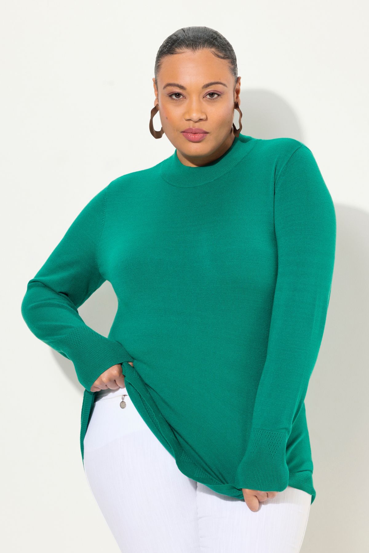 Col légèrement montant, faisant corps avec le pull, Coupe confortable, Manches longues, Finitions bords-côtes à la base et aux manches, Maille fine, douce et confortable, Long entrej env. 68-76