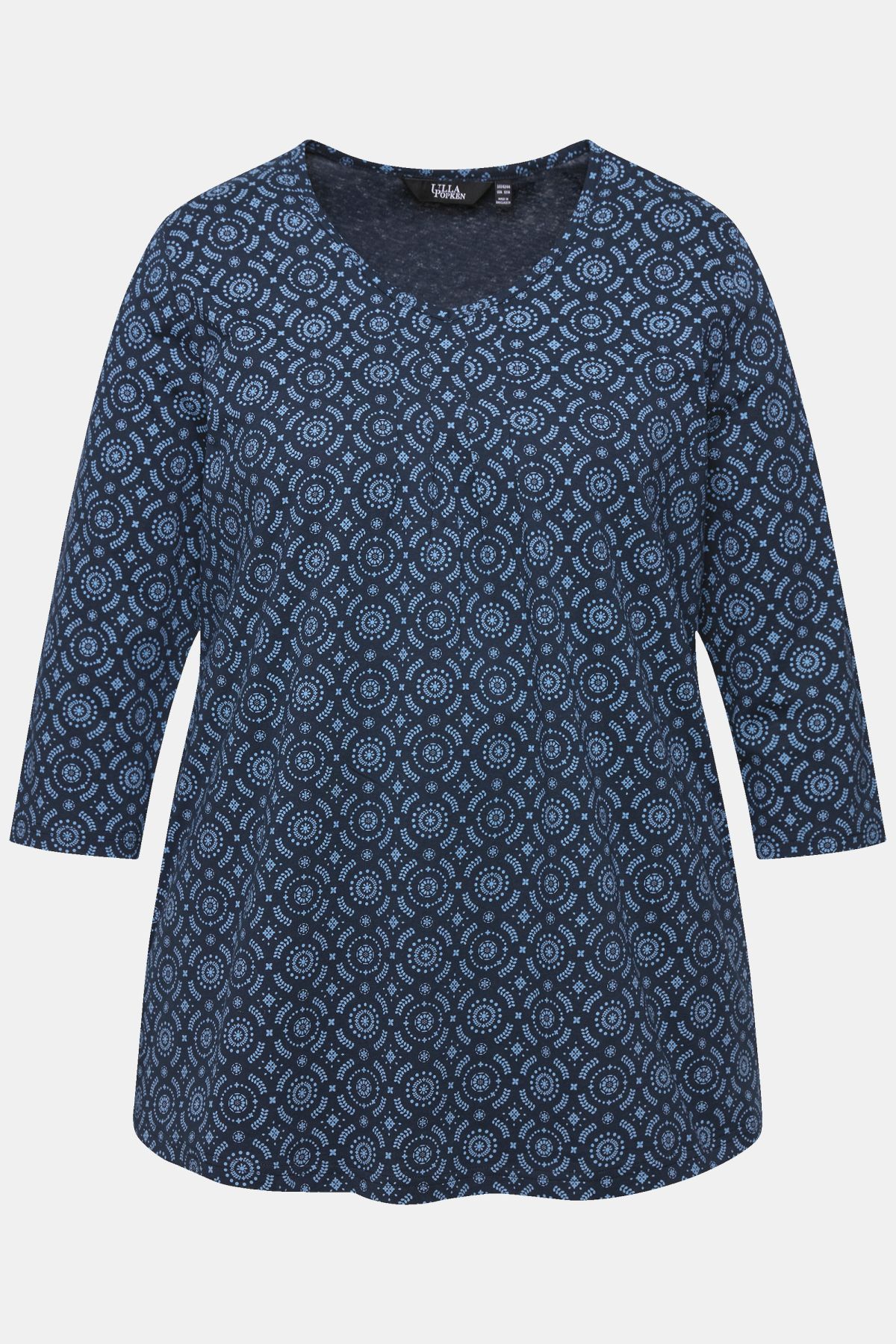 T-shirt à ligne en A, col en V et manches 3/4, jolis plis creux