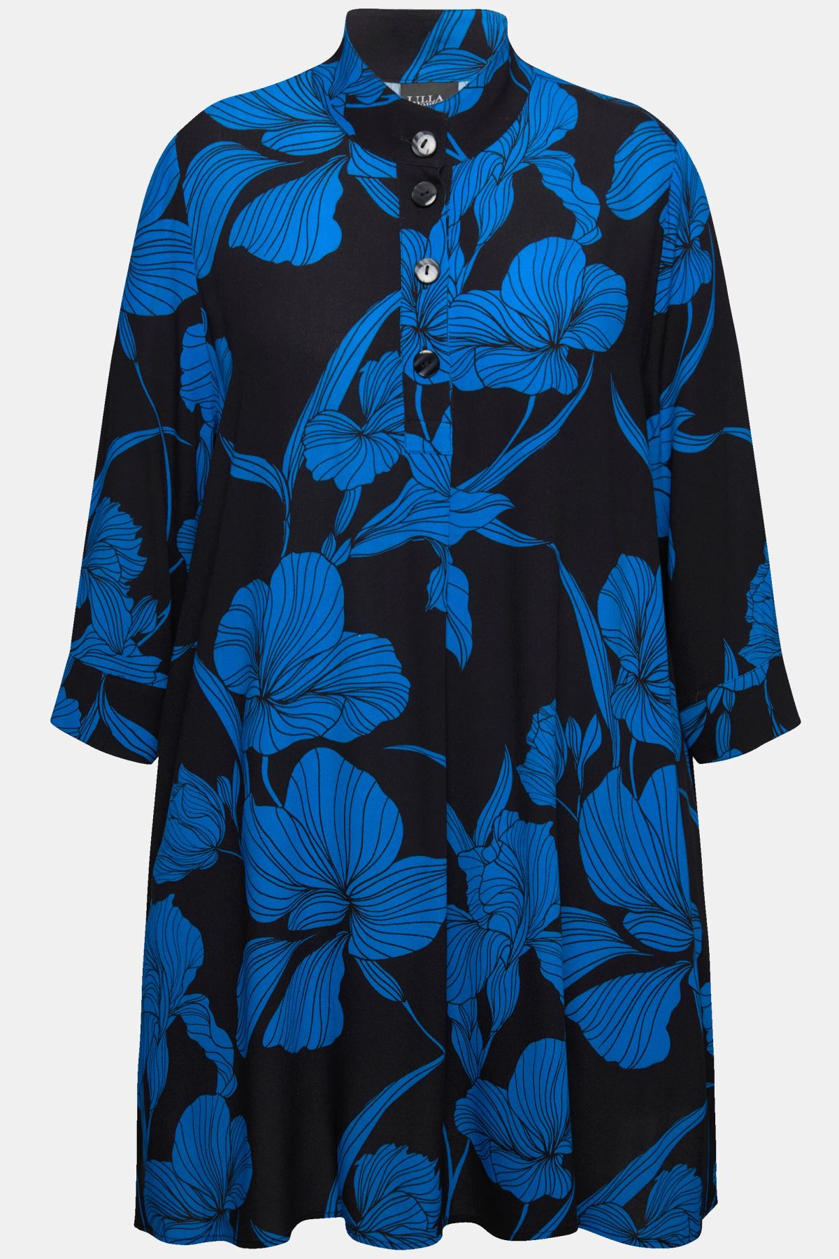 Tunique col montant et manches 3/4, motif à fleurs, coupe évasée