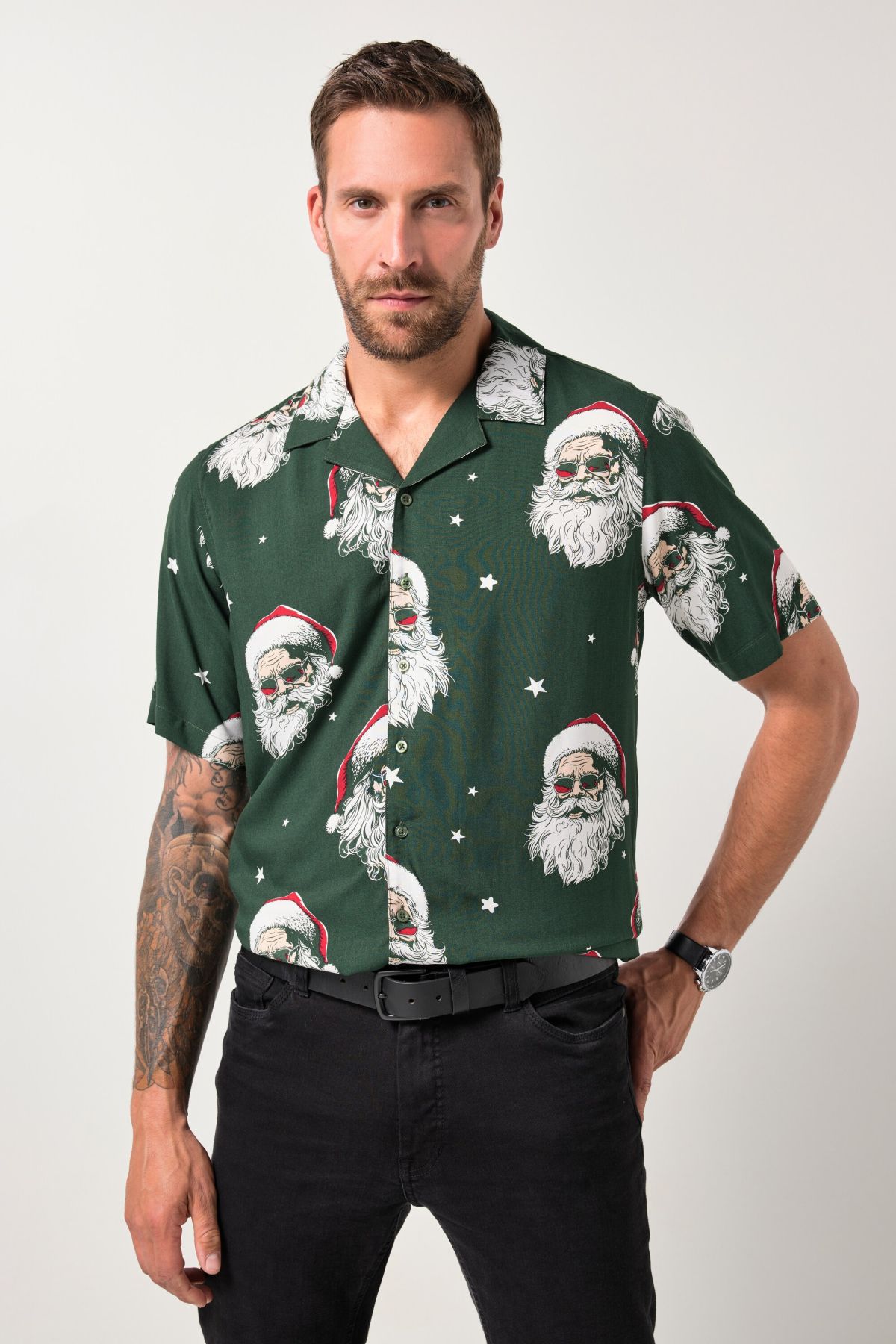 Coupe spéciale jusqu'au 8 XL, Viscose douce à imprimé Noël, Coupe Cuba Fit « flottante », Col cubain, Boutons plus grands à partir du 4 XL, Long. entrej. env. 77-93