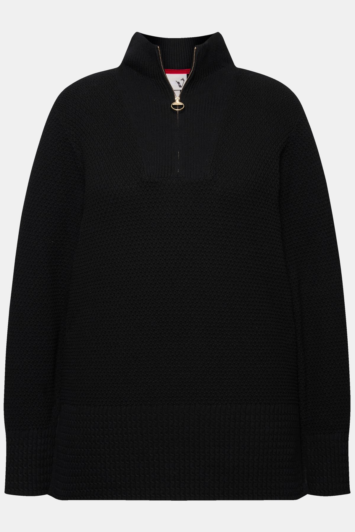 Maille texturée, douce et confortable, Empiècement col montant, avec fermeture zippée, Larges bords-côtes aux extrémités des manches longues et à la base du pull, Fentes sur les côtés pour encore davantage de confort, Pur coton, Long. selon taille env. 68