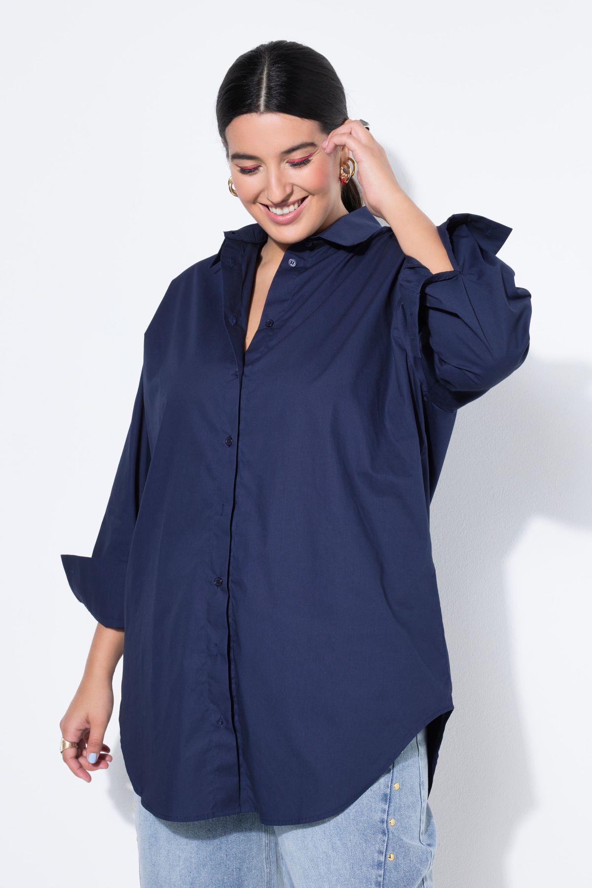 Bouse oversized à manches longues. Patte de boutonnage au dos