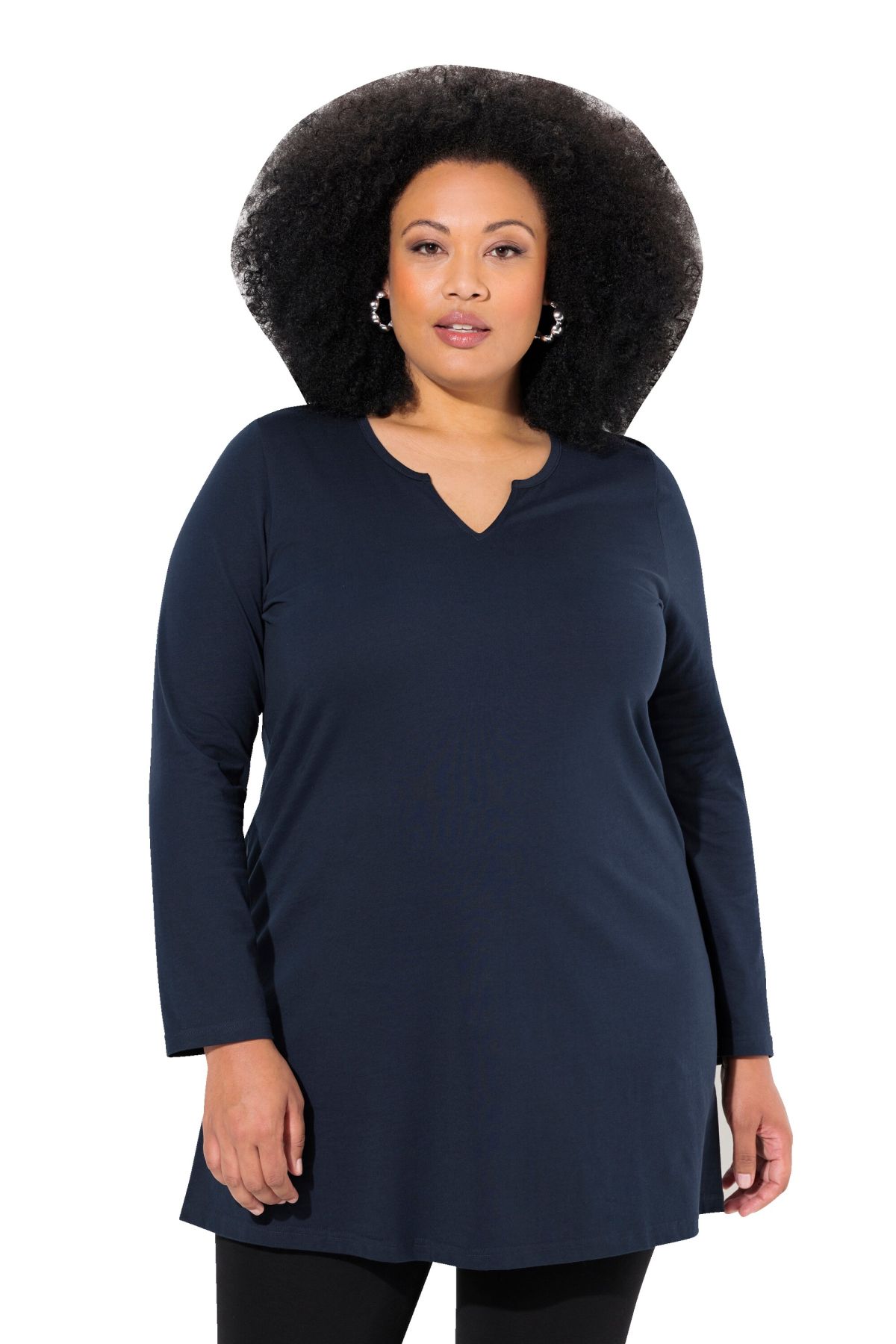 T-shirt long, col tunisien et manches longues, coupe évasée