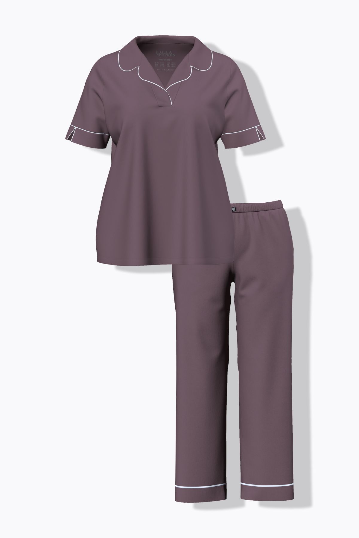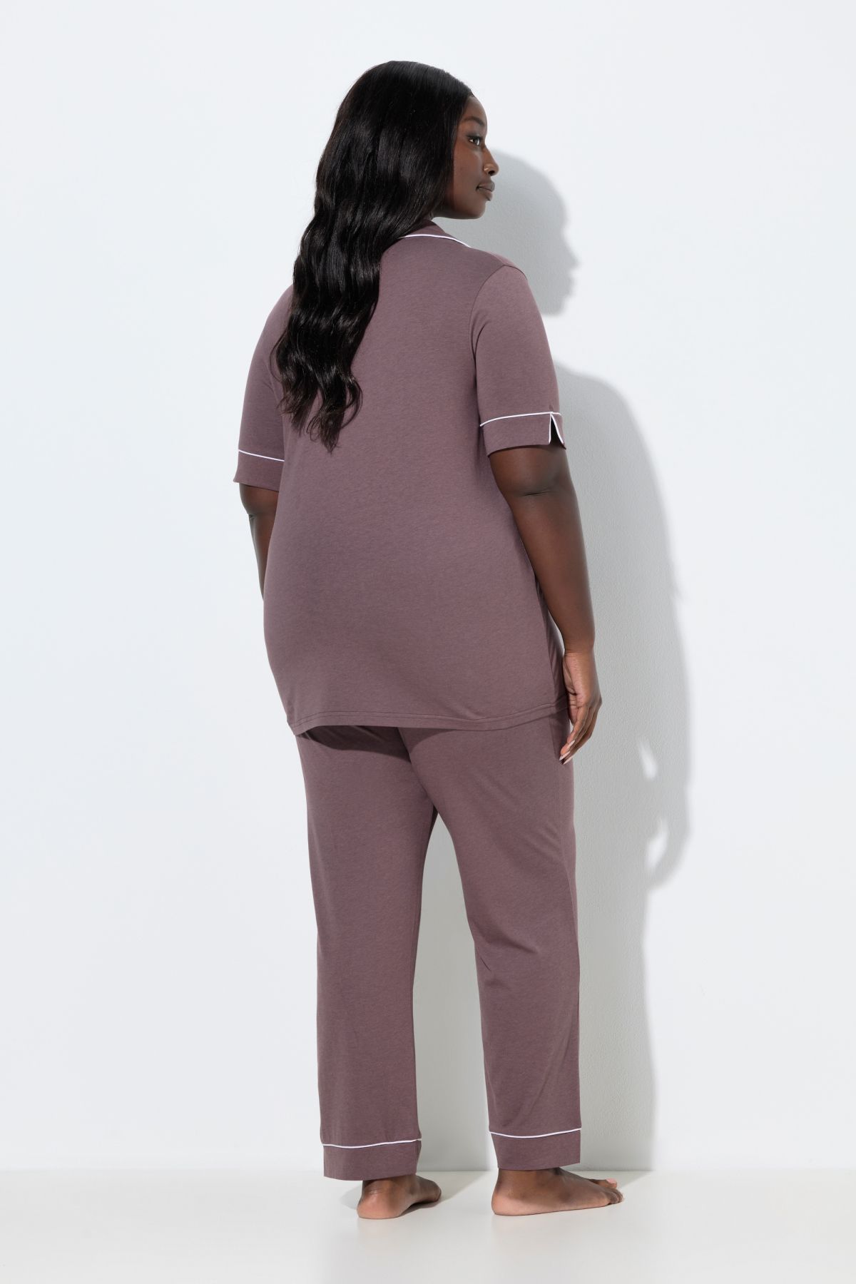 Pyjama col à revers et manches courtes, passepoils fantaisie