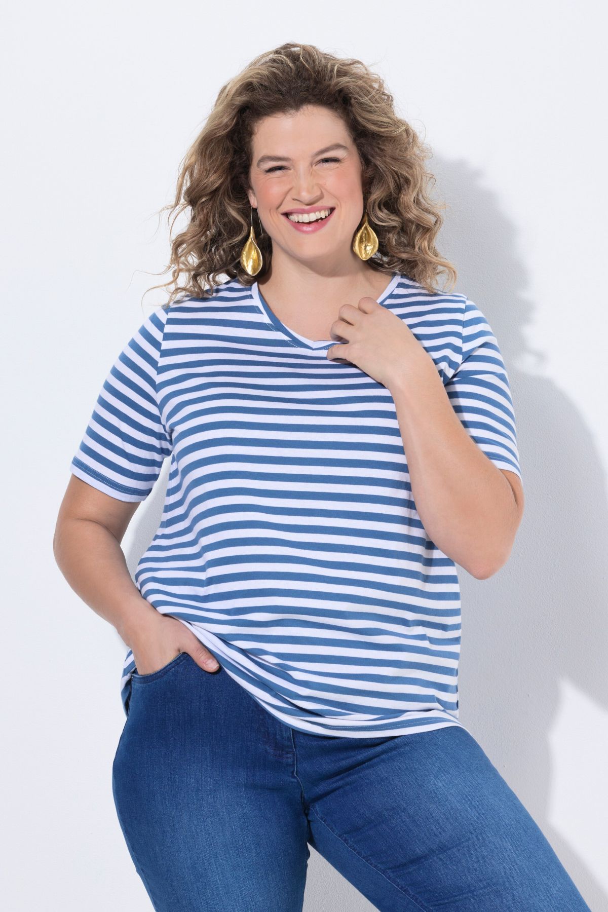 Lot de 2 - 1x rayures et 1x uni, Décolleté en V, Coupe évasée et confortable, Manches courtes, Coton bio durable, Long. selon taille env. 72-76 cm.