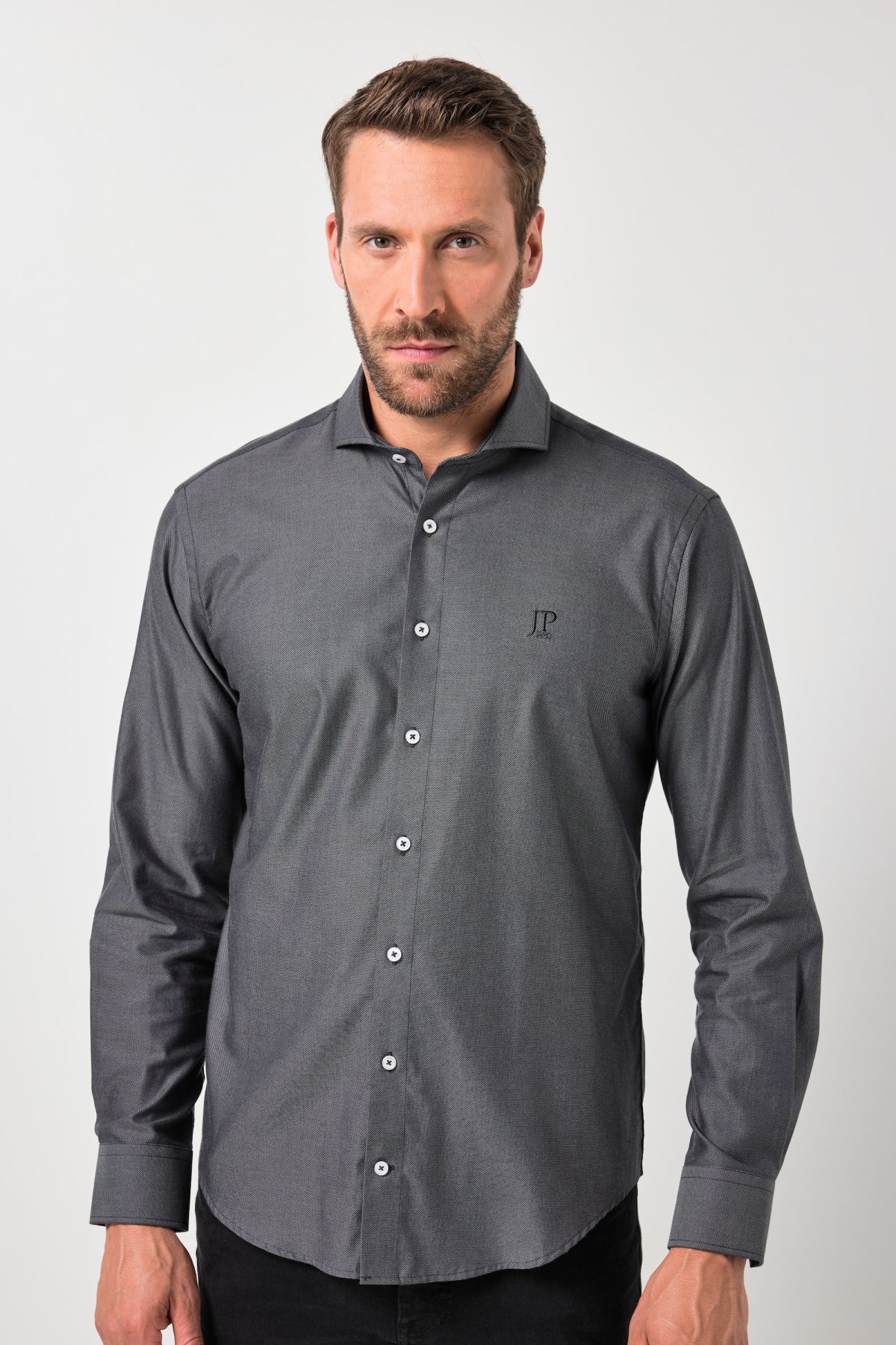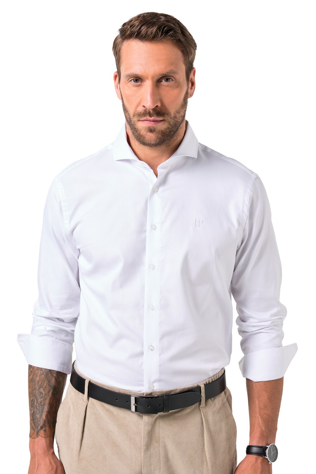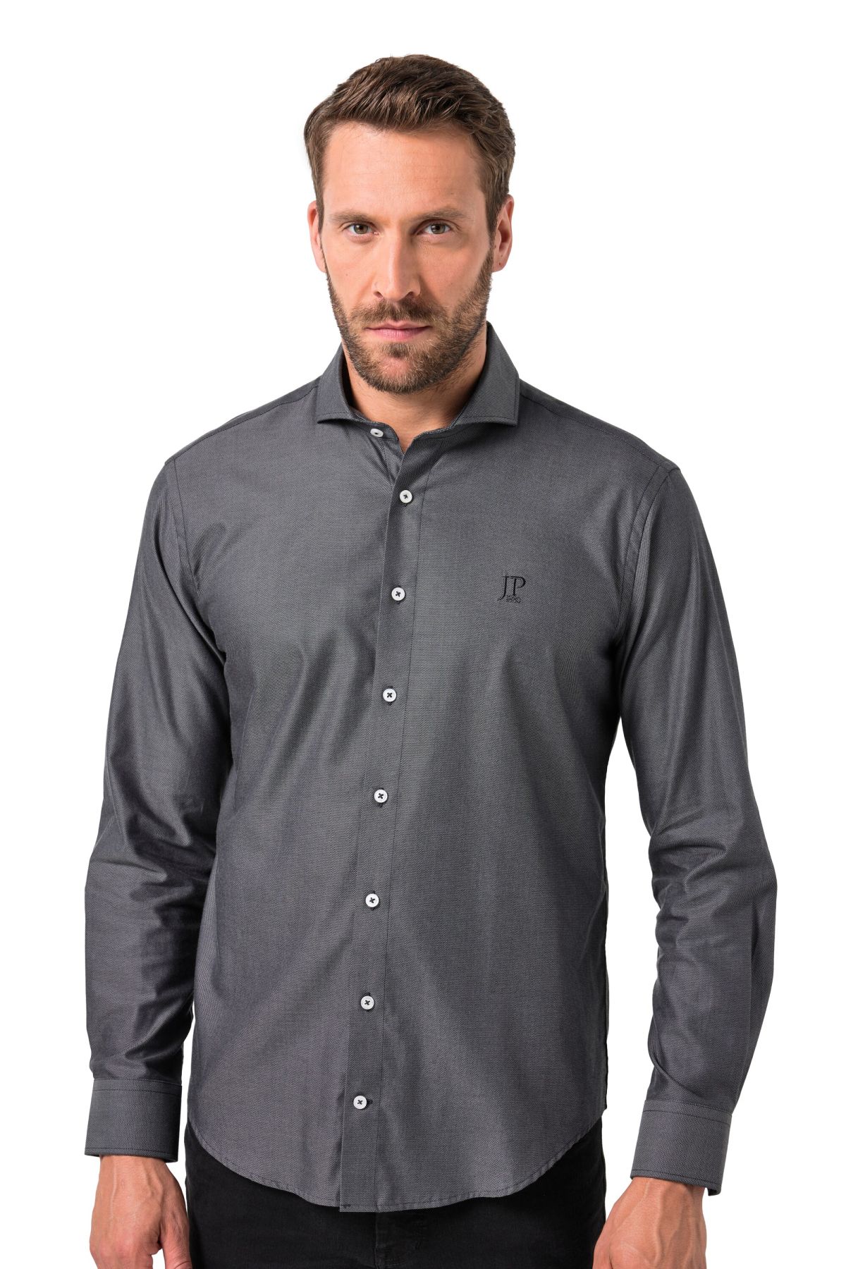 Coupe spéciale jusqu'au 8 XL, Tissu TwoTone (deux tons) texturé de grande qualité, Coupe Modern Fit, Col requin, Boutons plus grands à partir du 4 XL, Long. selon taille env. 78-92 cm.