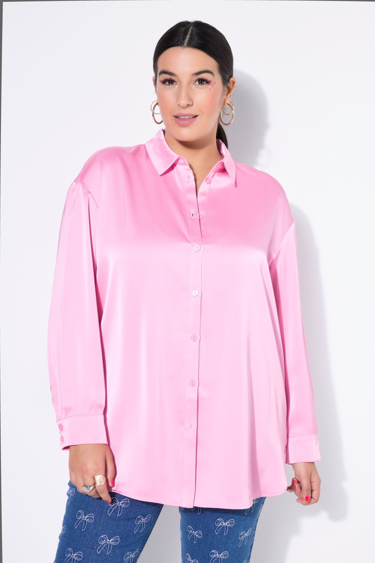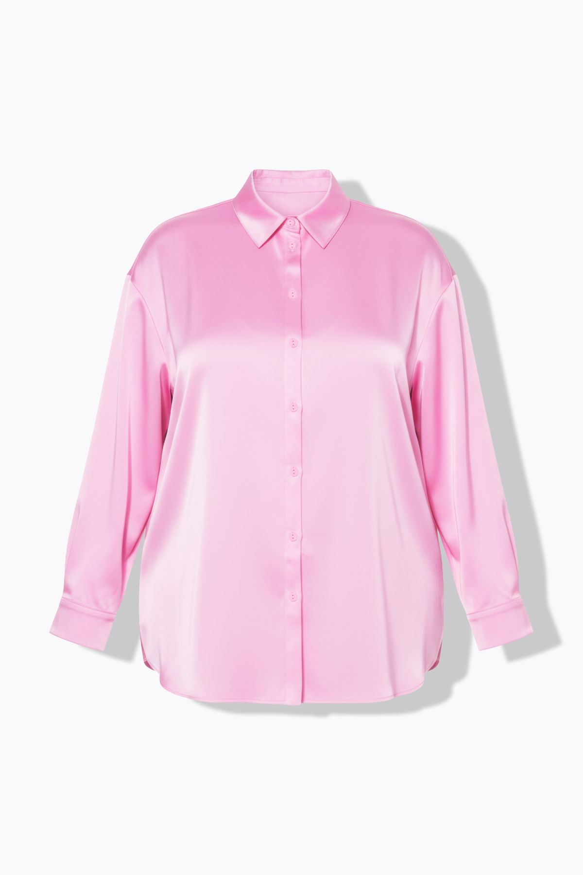 Oversize Shape, schimmernder Satin, Langarm mit Manschetten, gerundeter Saum, Größenangepasste Länge ca. 80-84 cm.