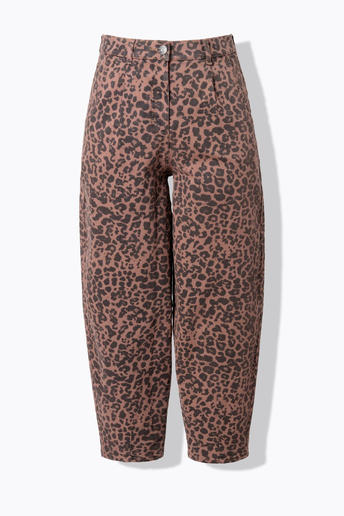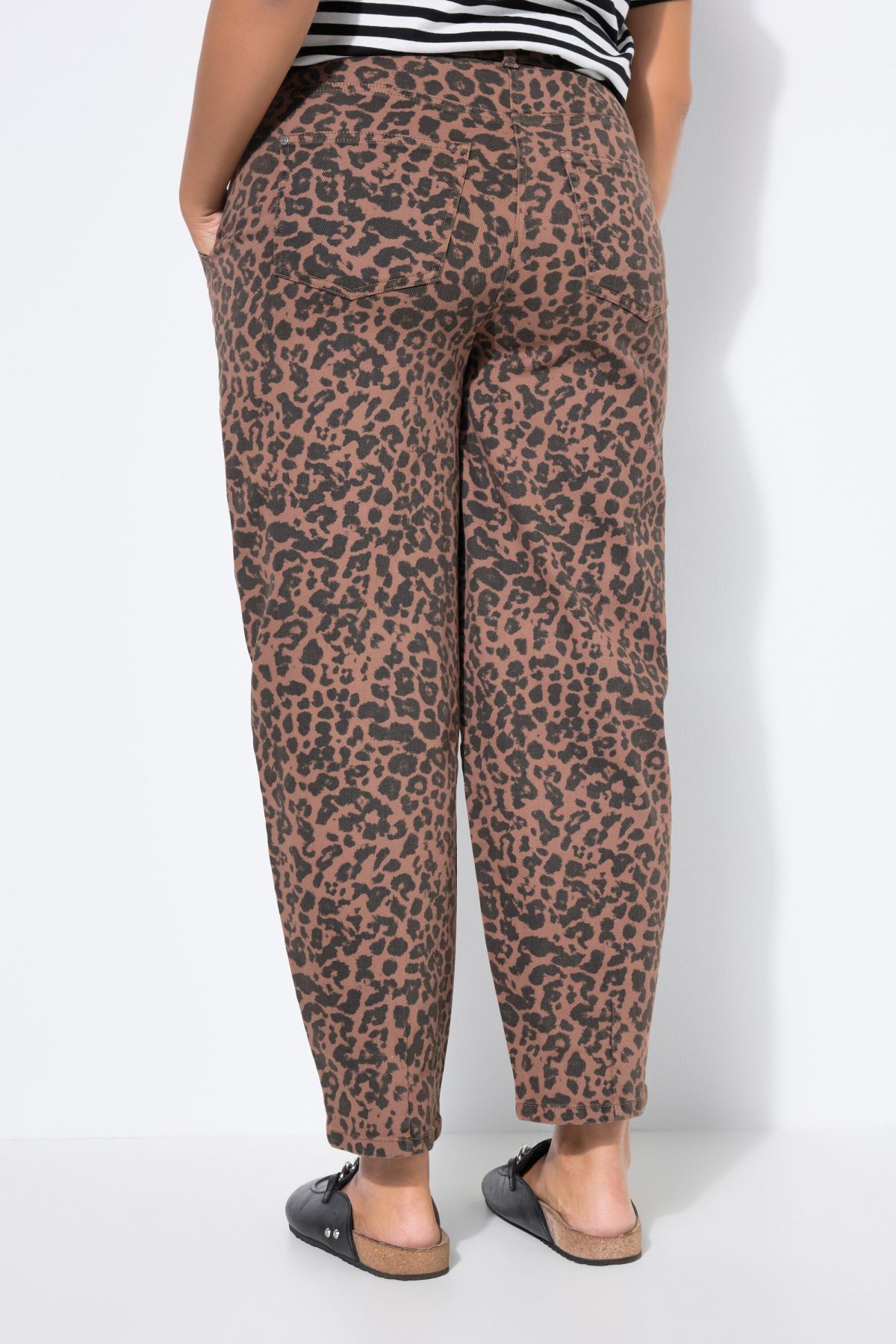 Jambes larges ballon, taille haute, Imprimé léopard, Modèle 5 poches, Taille élastique confortable, Passants pour ceinture, Entrej. env. 74 cm.