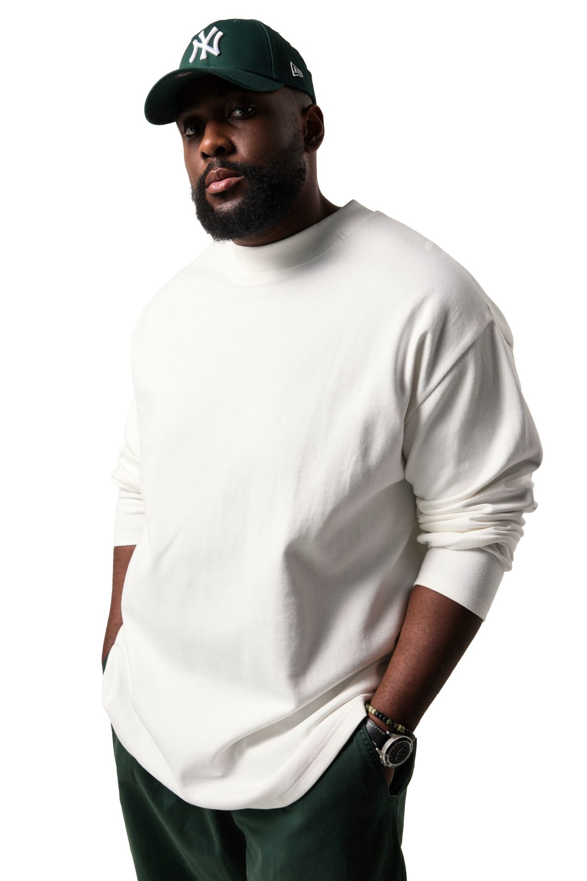 T-shirt STHUGE à manches longues, coupe oversize, col légèrement montant - jusqu'au 8 XL