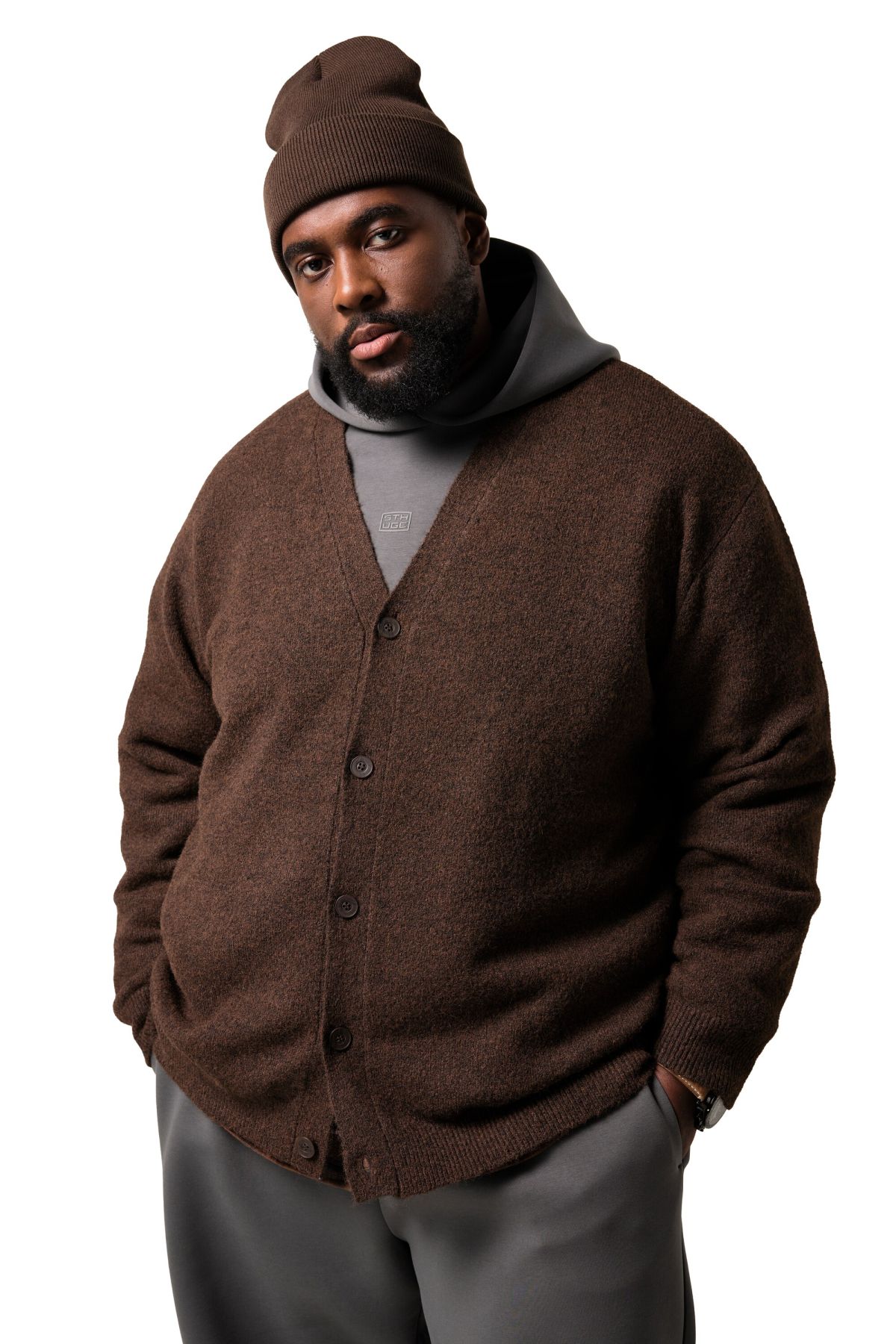 Taille : du L au 7 XL, Maille fine, douce et confortable, Encolure en V, Finitions bords-côtes, Notre mannequin mesure 1,90 m et porte du 4 XL, Long. selon taille env. 70-81 cm.
