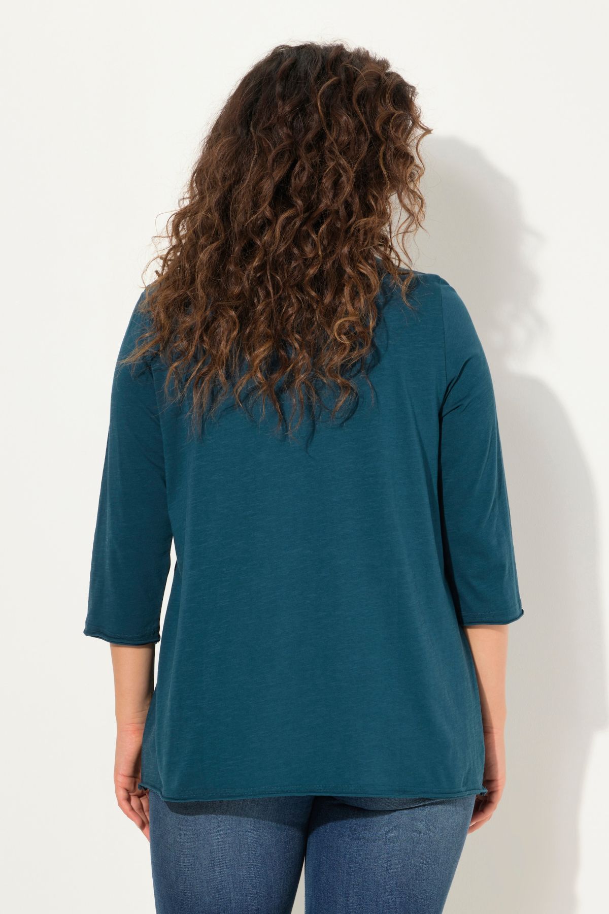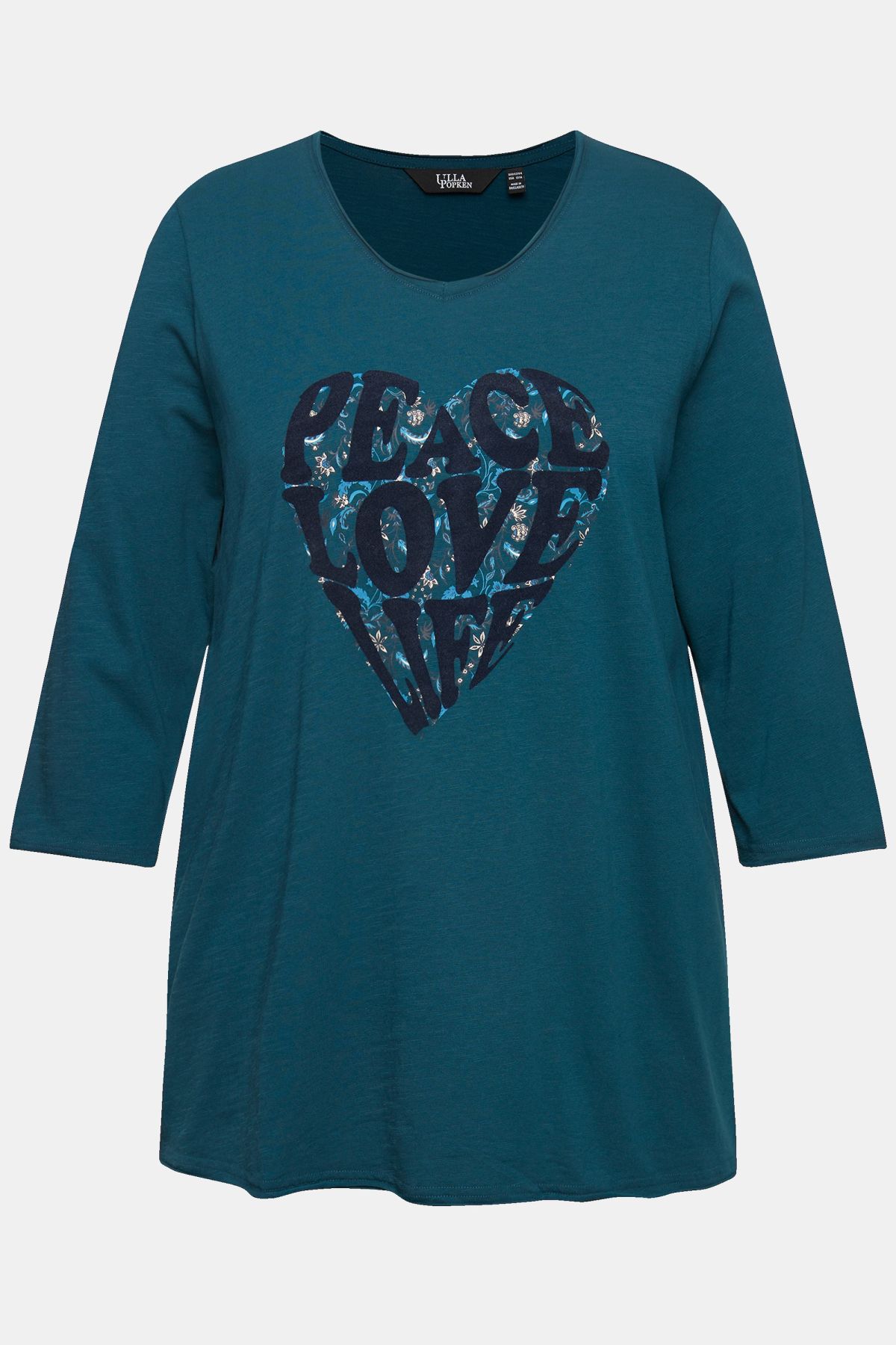 T-shirt col en V et manches longues. Motif cœur et coupe évasée.