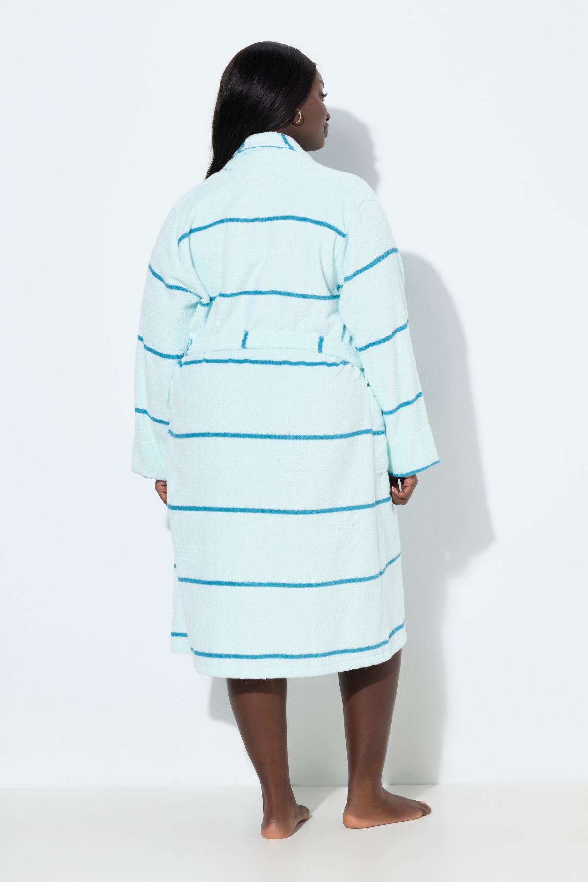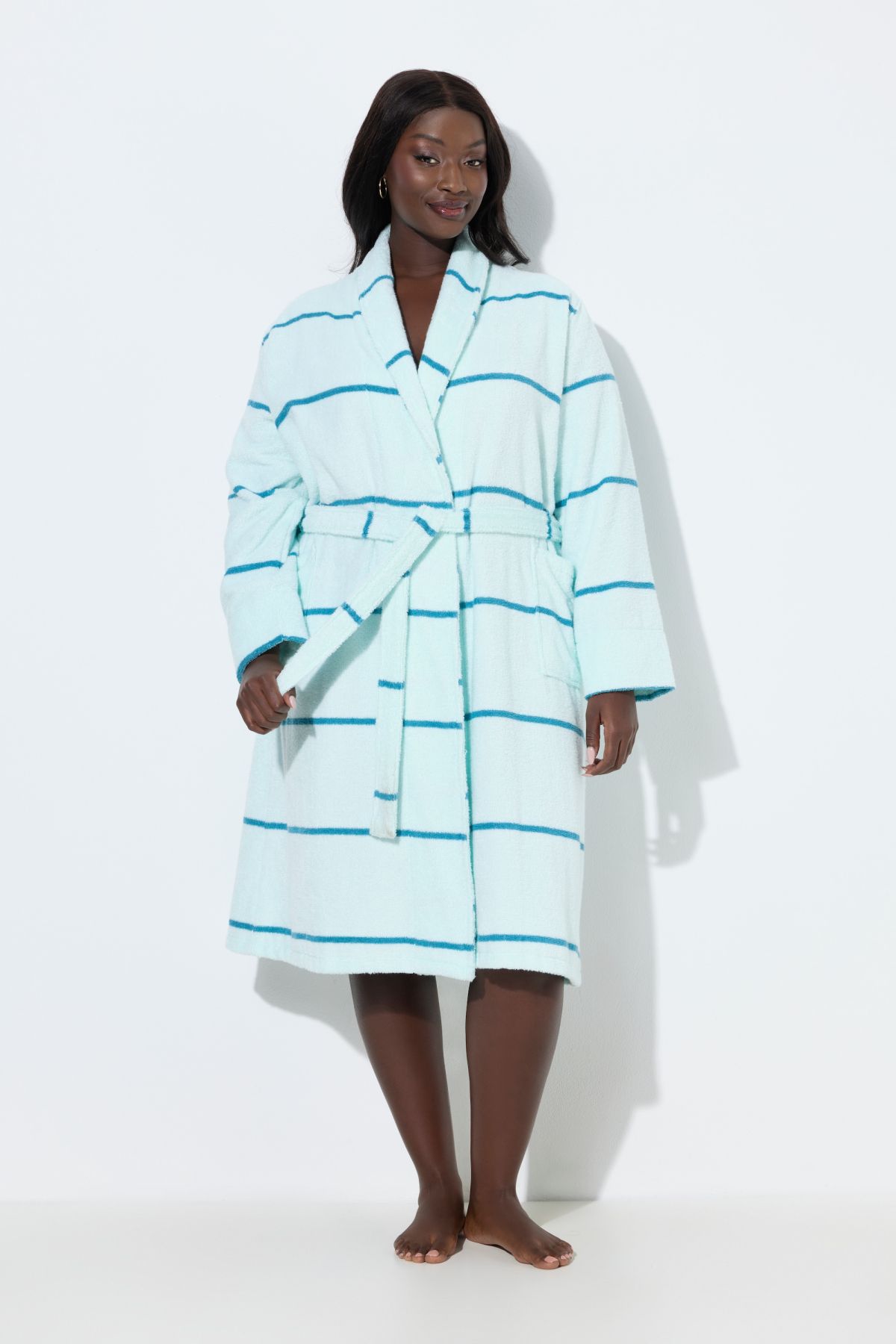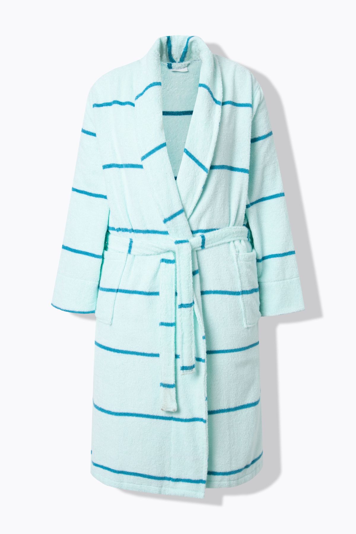 Peignoir en tissu éponge rayé, col châle et manches longues, ceinture