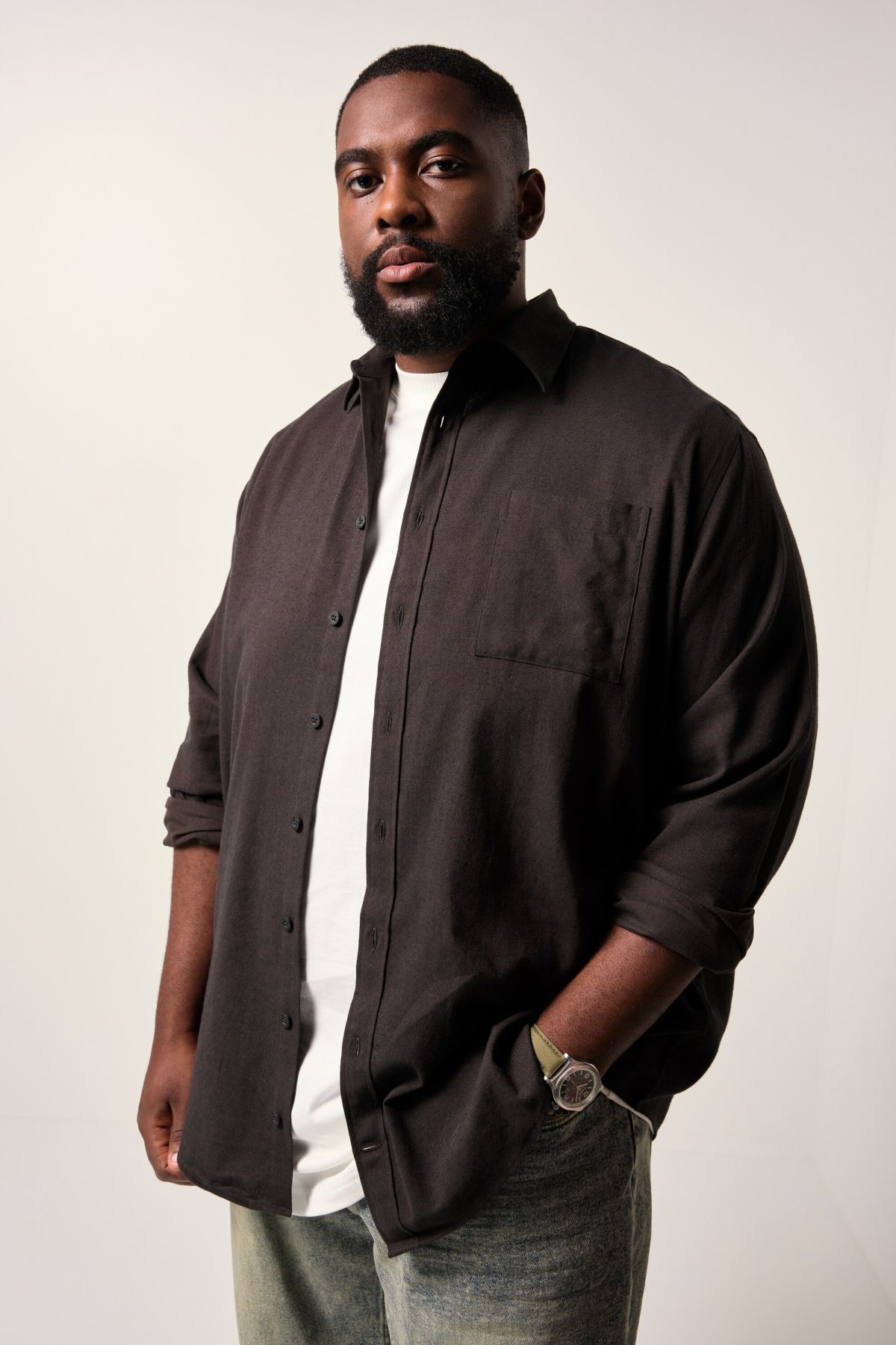 Chemise en lin mélangé. Manches longues et col à pointes boutonnées - coupe Modern Fit