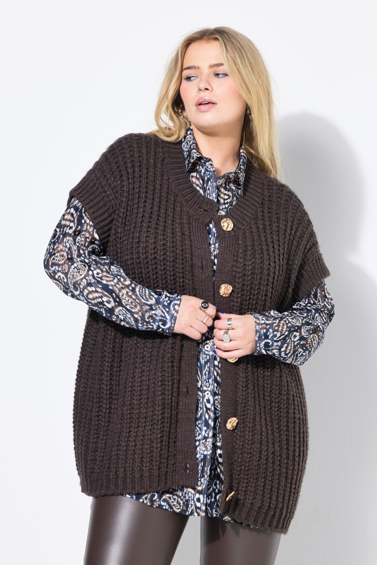 Gilet en maille texturée, boutons fantaisie et coupe Boxy Shape