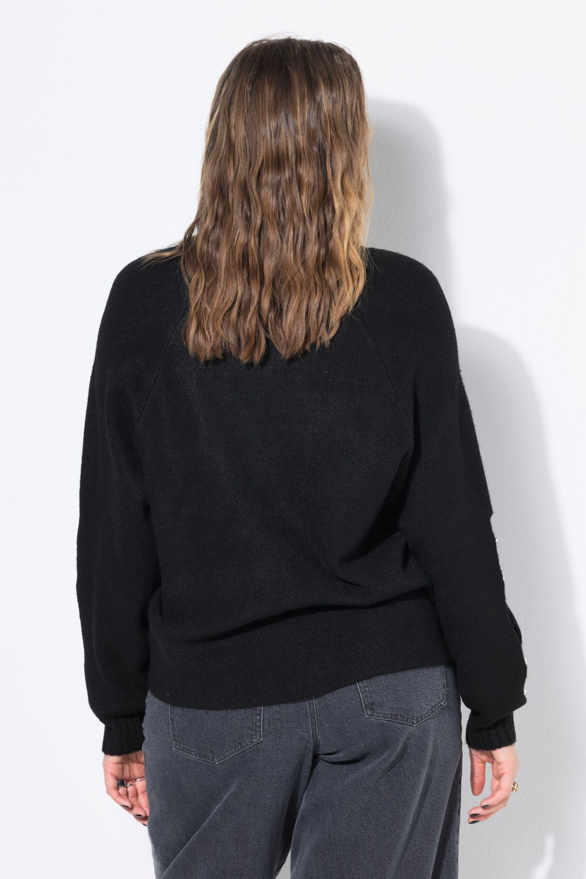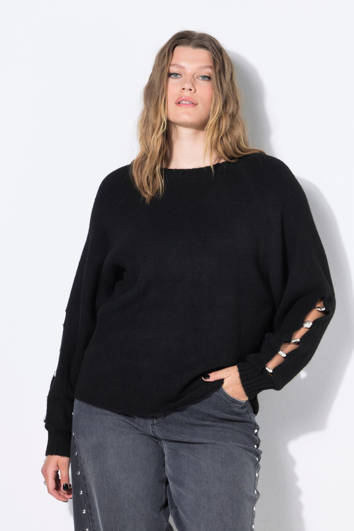 Pull coupe Boxy Shape, manches ballon avec fente et pierres fantaisie
