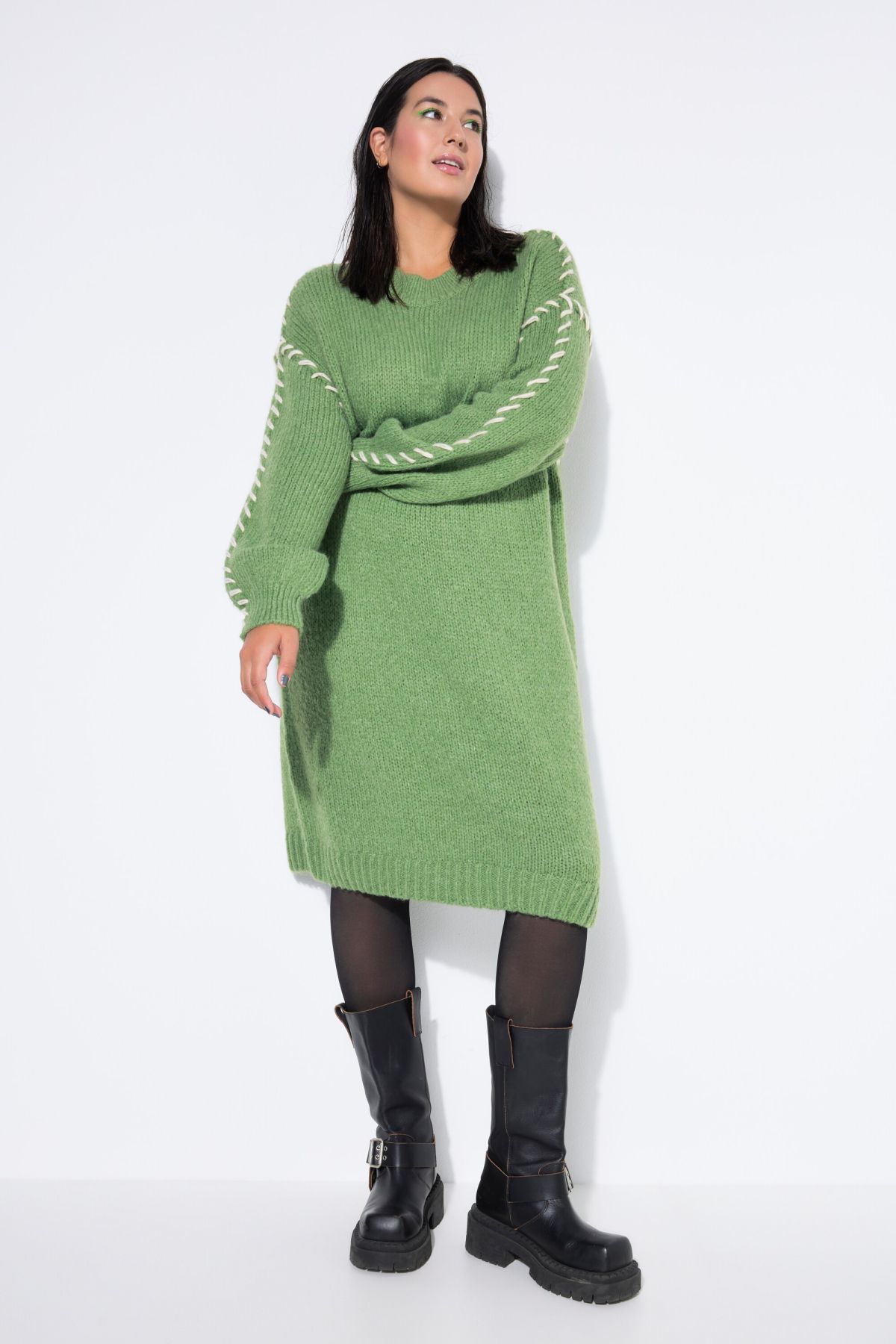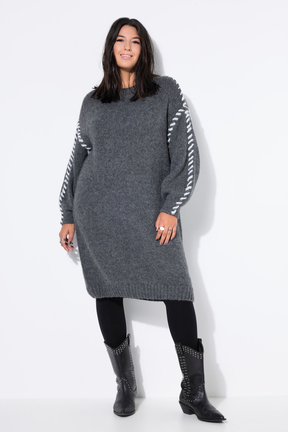 Coupe oversize, Grosse maille tendance, larges coutures contrastantes, Décolleté rond, Manches longues et amples, Long. selon taille env. 97 cm.