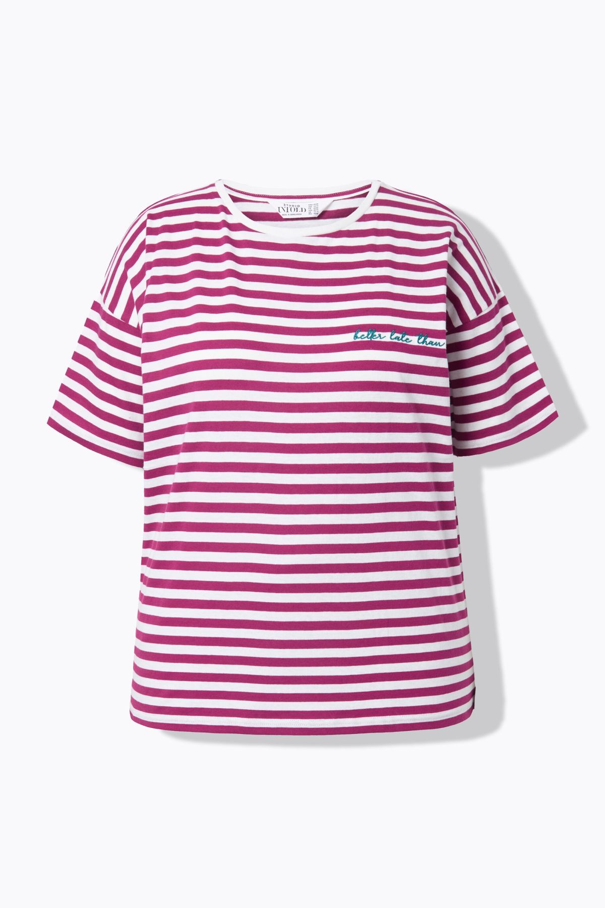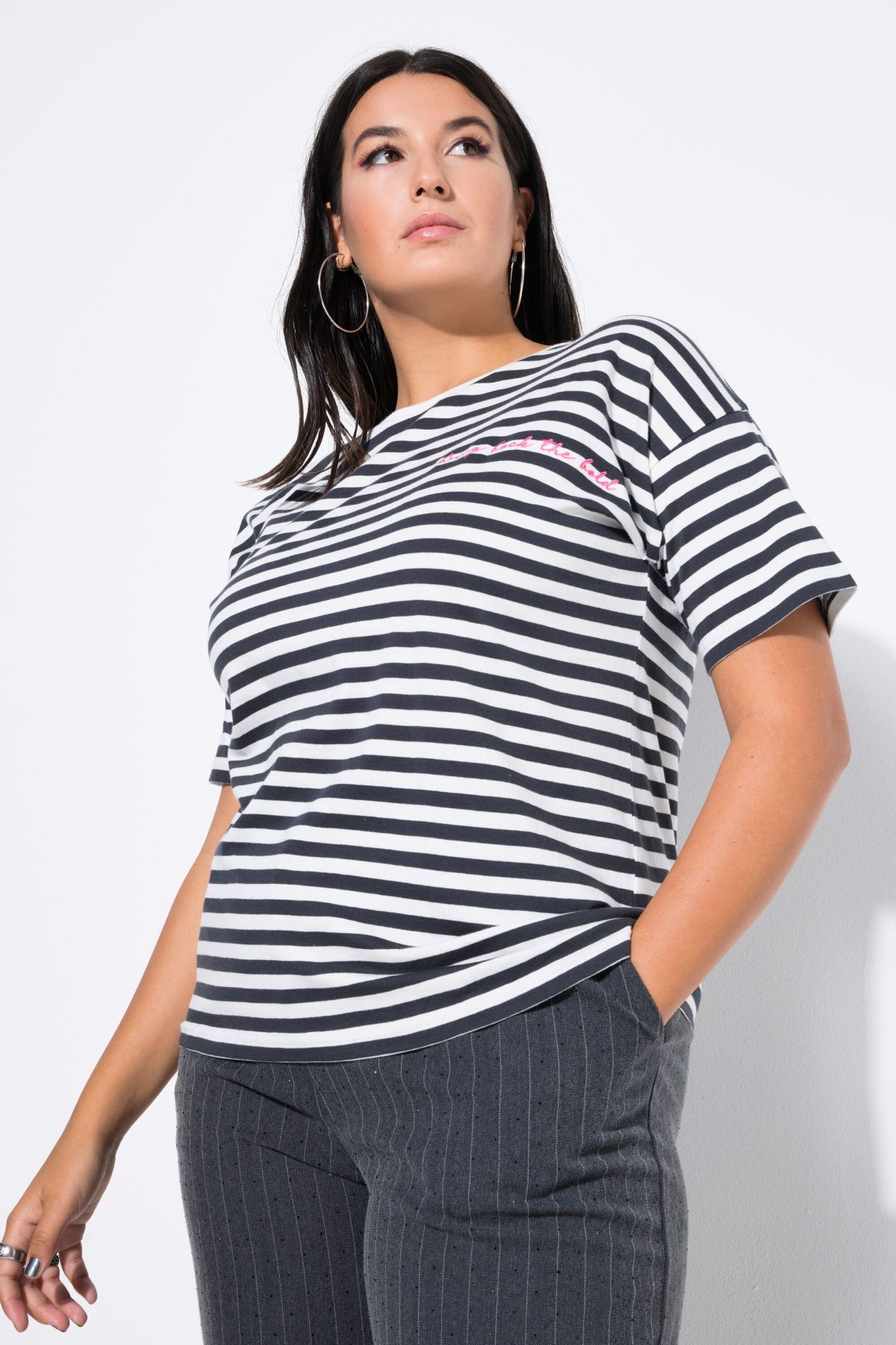 Coupe oversize, Jersey rayé, doux et confortable, Broderie, Manches courtes, Long. entrej. env. 65-73 cm.