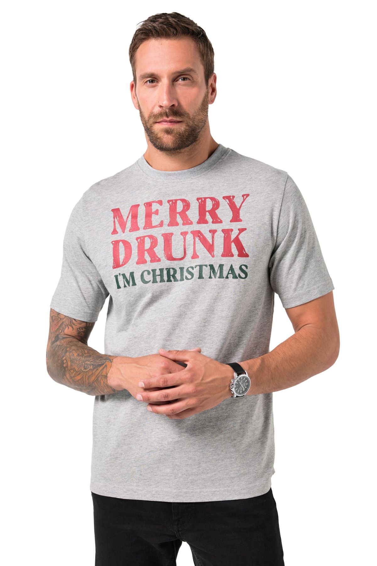 Coupe spéciale jusqu'au 8 XL, Jersey de coton chiné, doux et confortable, Motif de Noël, Manches courtes, Long. selon taille env. 74-86 cm.
