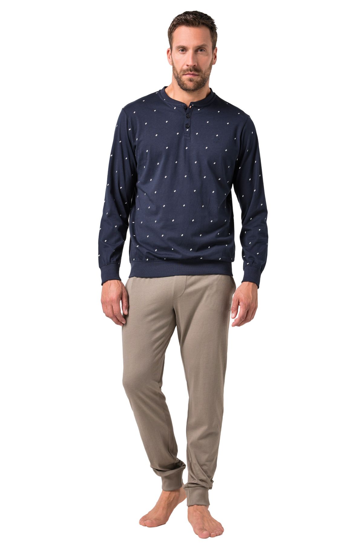 Coupe spéciale jusqu'au 8 XL, Pyjama deux pièces, avec pantalon, Coupe ventre confort - empêchant le vêtement de remonter, T-shirt col Henley et manches longues, motif minimaliste, Pantalon, Long. selon taille env. 74-86 cm.