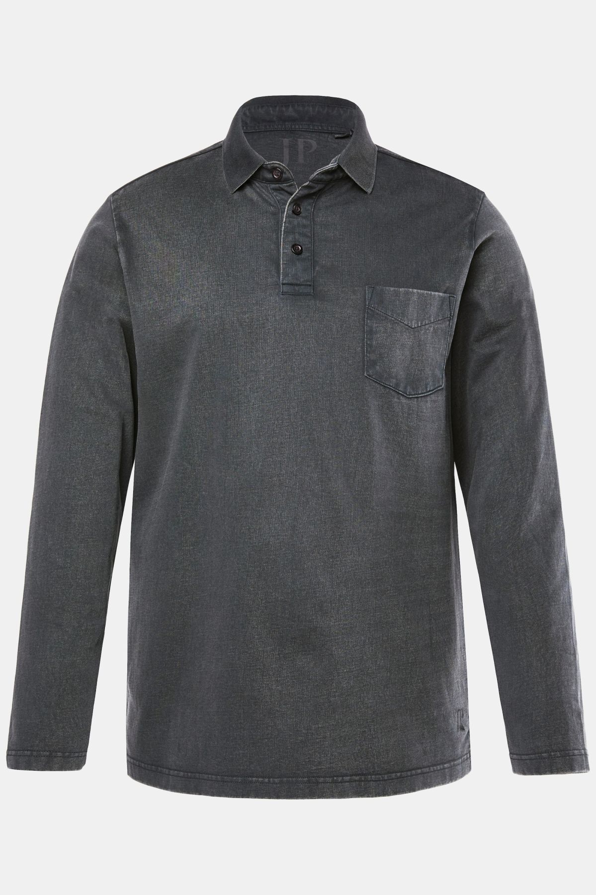 Coupe spéciale jusqu'au 8 XL, Jersey doux et confortable, Style vintage - délavage acid washed, Col requin, poche poitrine, Manches longues, Long. selon taille env. 74-86 cm.