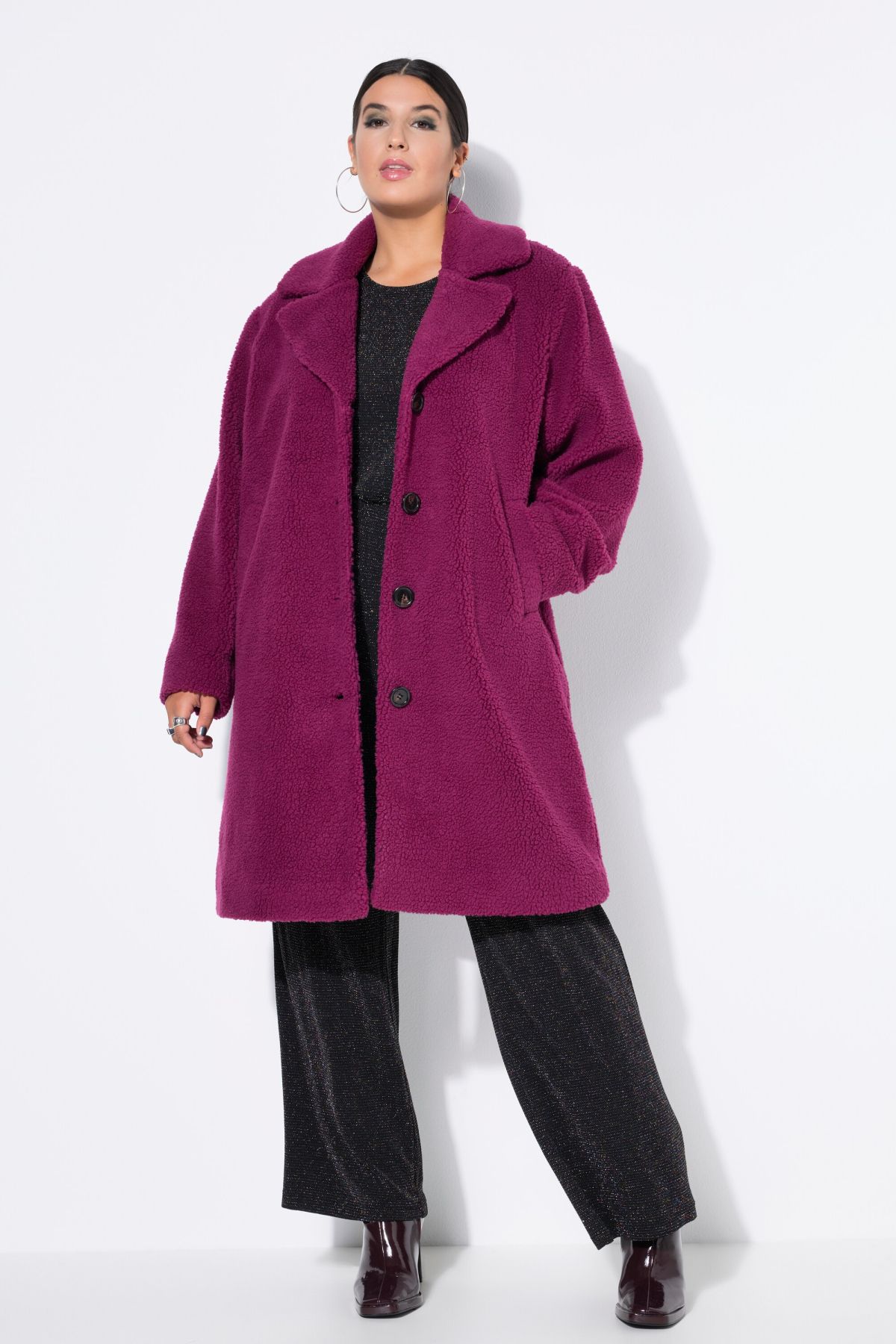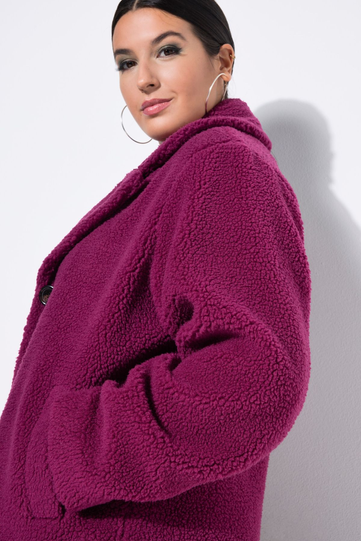 Coupe évasée longue, Polaire bouclée douce et confortable, Col à revers, 2 poches, Doublure intégrale, Long. env. 100 cm.