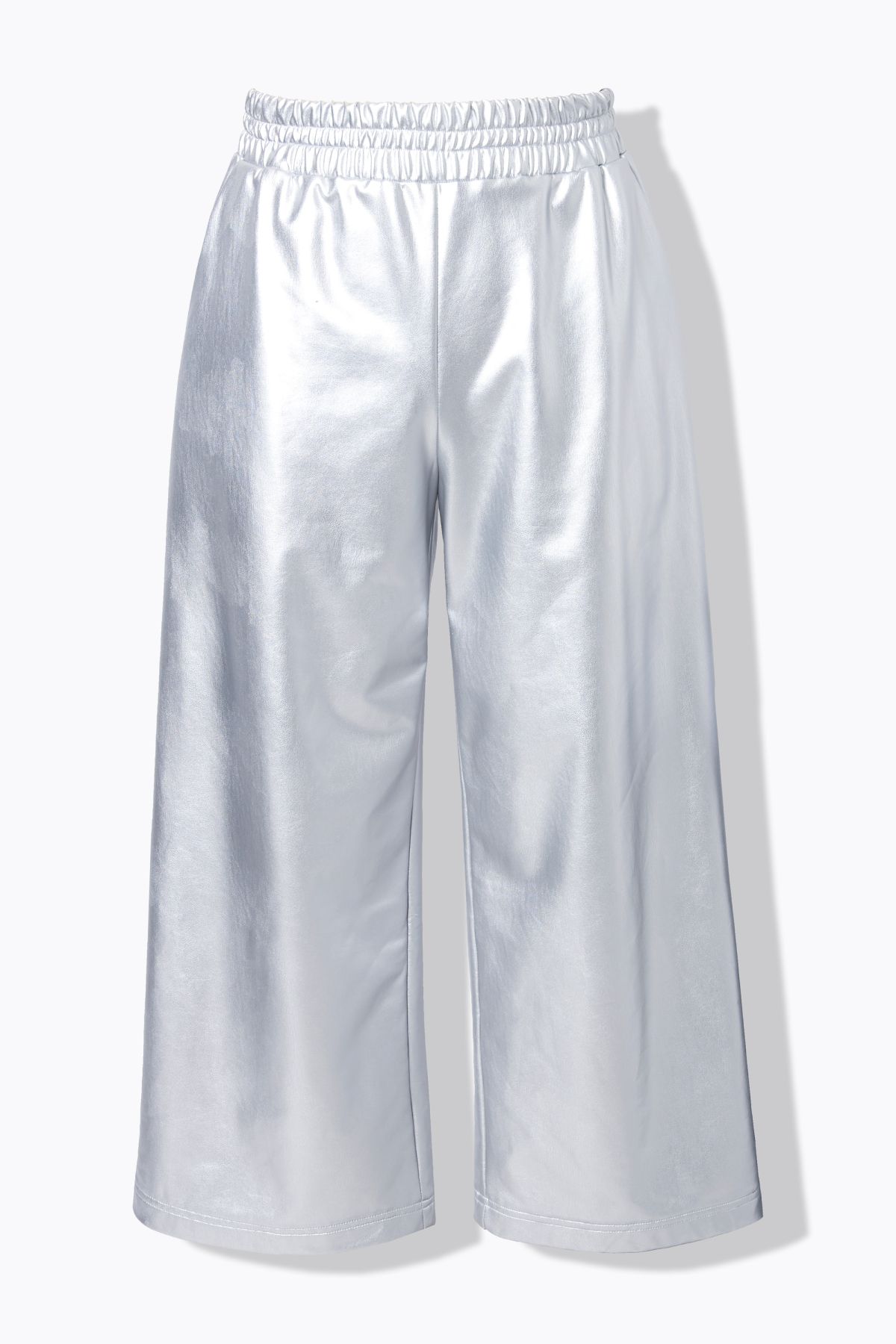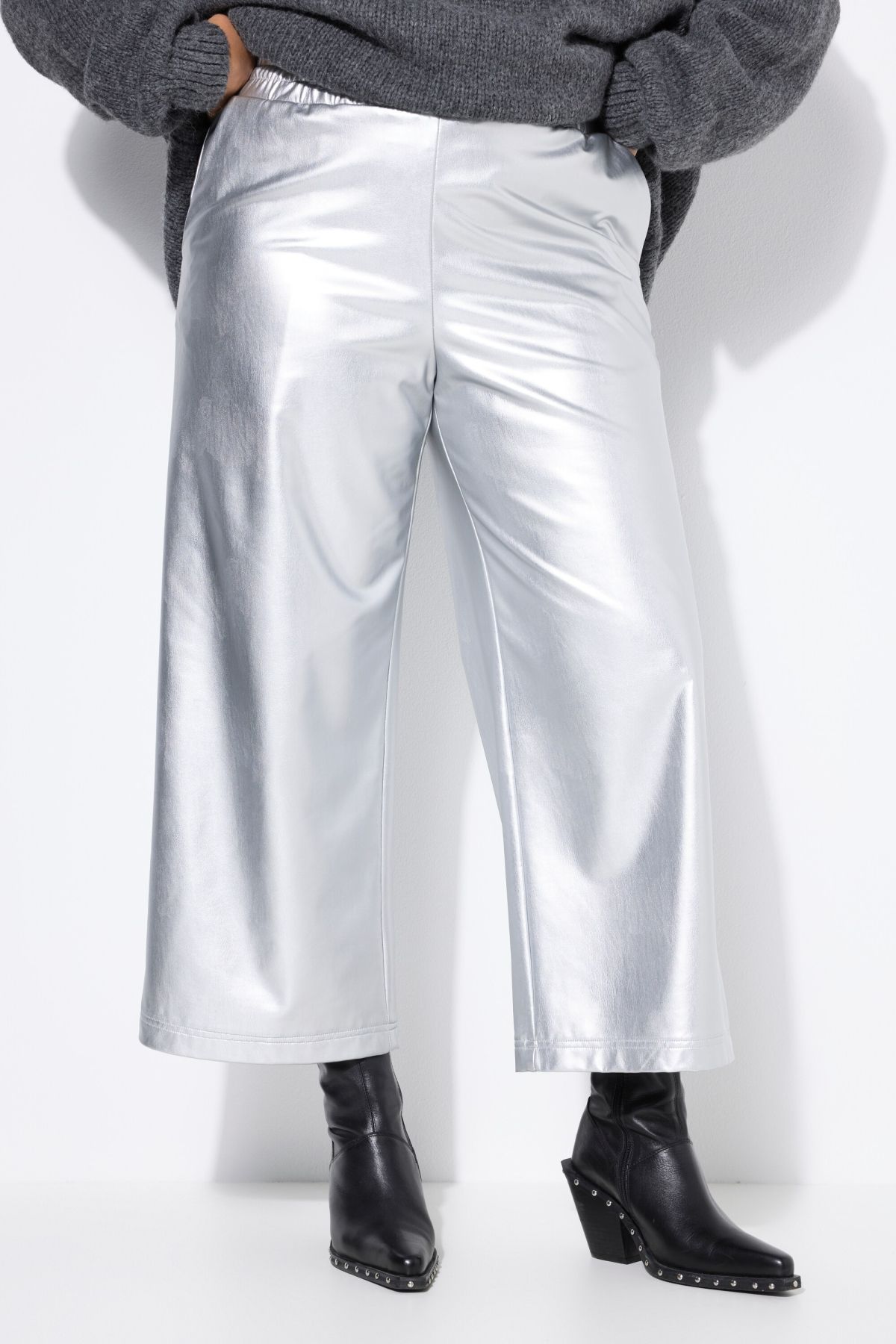 Coupe Wide Legs (jambe large), Aspect cuir argenté, Taille élastique, Entrej. env. 68 cm.