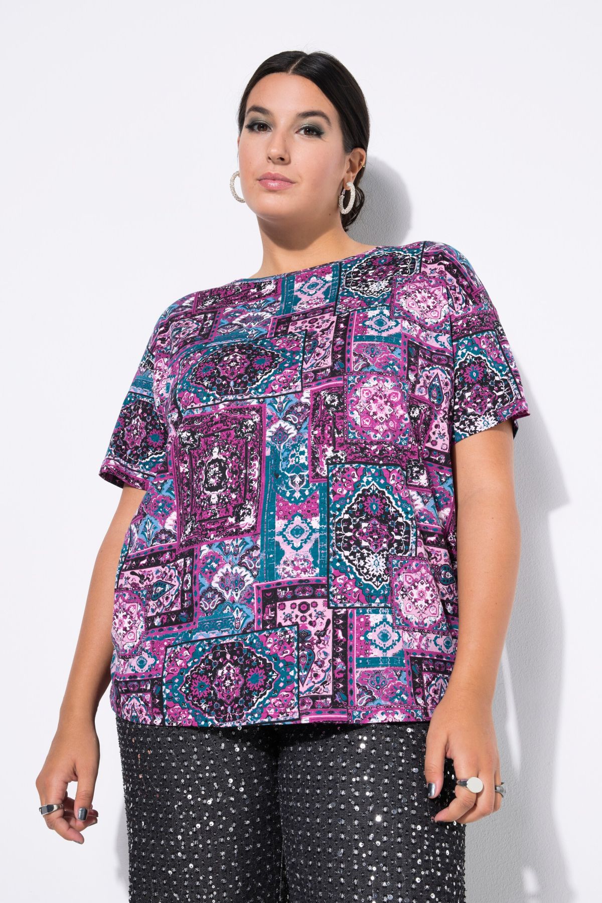 Coupe oversize, Jersey doux et confortable, Imprimé floral, Manches courtes, Long. selon taille env. 65-73 cm.
