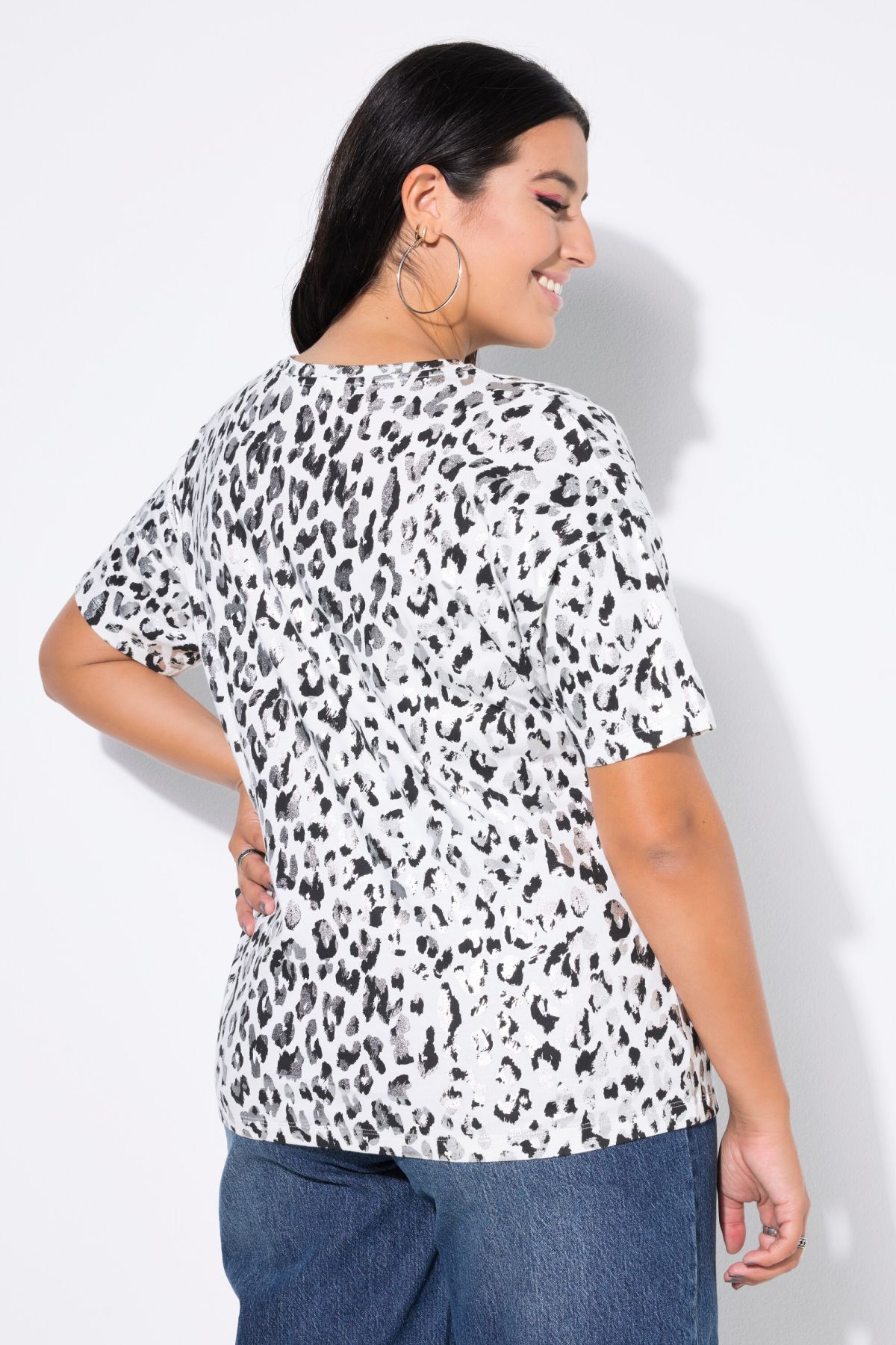 T-Shirt, leicht überschnittene Schultern, mit shiny Silver-Leo. Weicher Jersey mit überschnittenen Schultern, Halbarm. & 10;<br>& 10;<br> Studio Untold ist das Young Fashion Label von Ulla Popken. Der Fokus liegt auf einer starken Design-Aussage, auf neuesten Schnitten, experimentellen Materialien und den spannendsten neuen Einflüssen aus den Clubs und von den Straßen der angesagtesten Fashionmetropolen weltweit. Das Label für selbstbewusste Frauen, die gerne Statements setzen.& 10;<br>