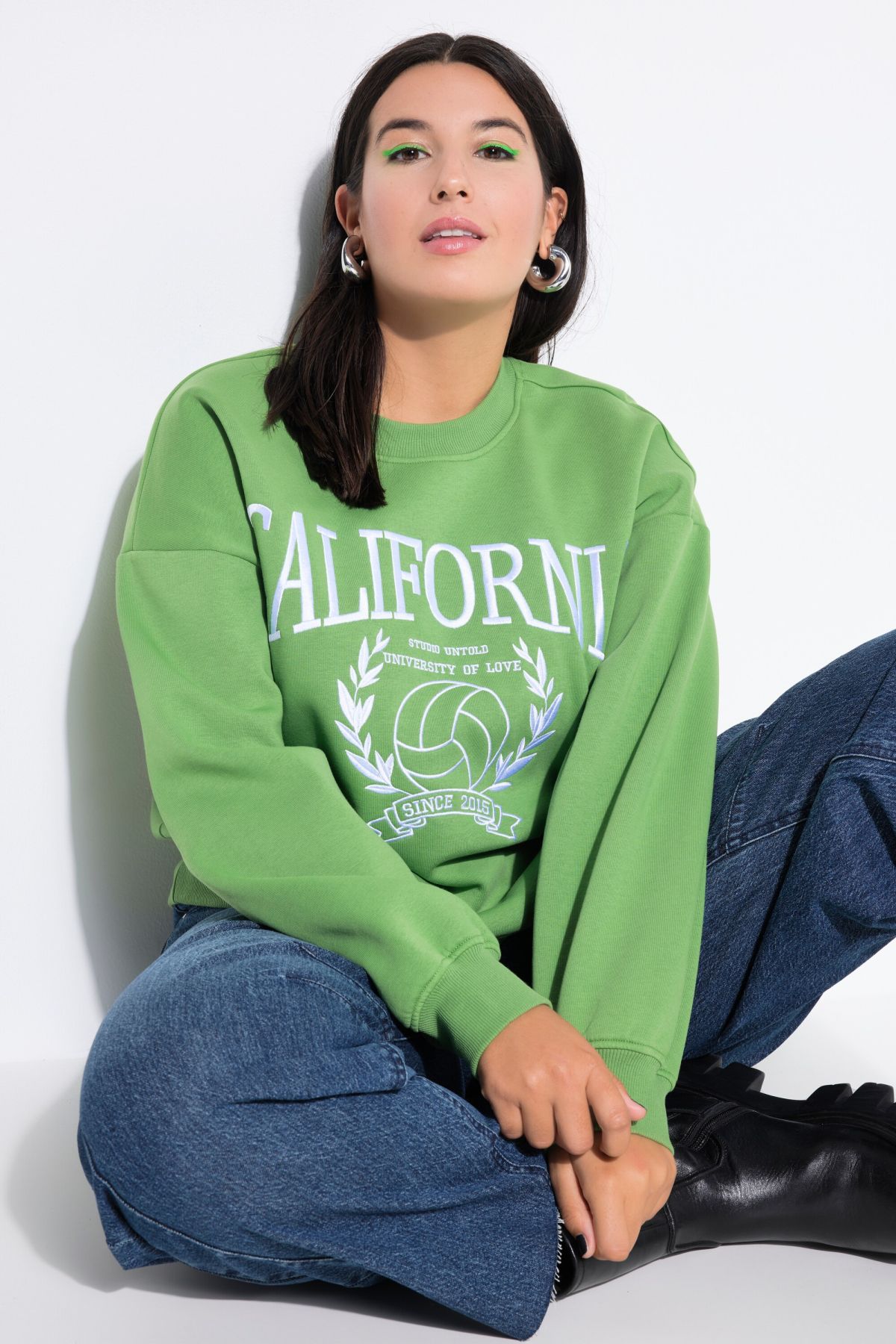 Sweat-shirt College, oversized, encolure arrondie, manches longues, inscription brodée