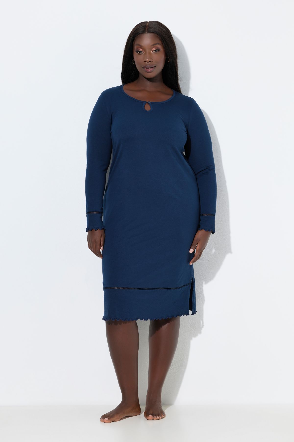 Ourlet creux aux manches et à la base, Encolure ronde avec petite découpe, Lisières ondulées tendance, Manches longues, Pur coton, Long. env. 110-115