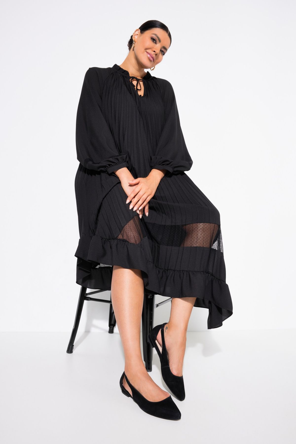 Robe en point de Rome, coupe évasée, décolleté en V, manches 3/4 et poches