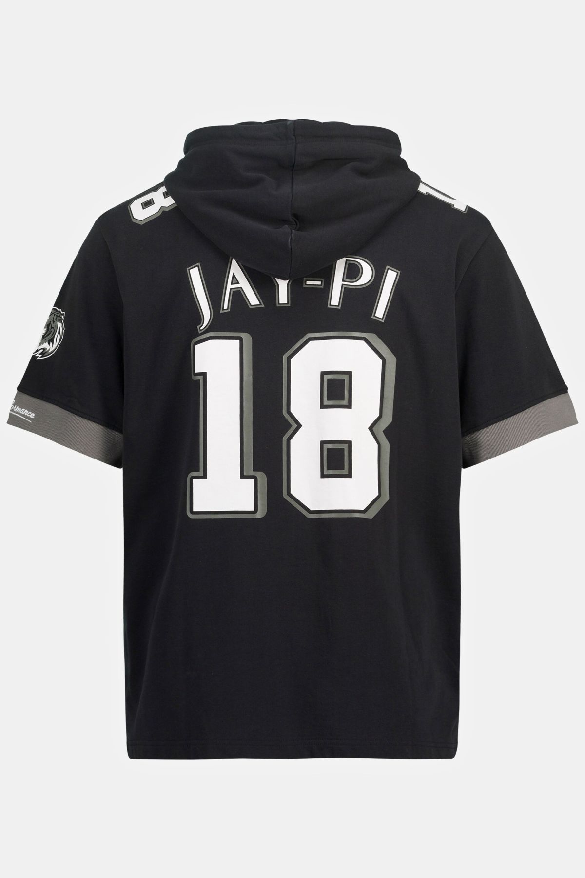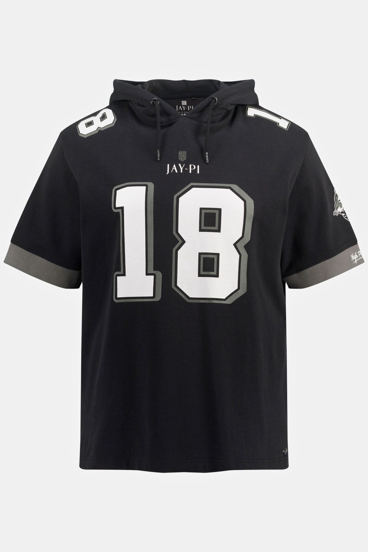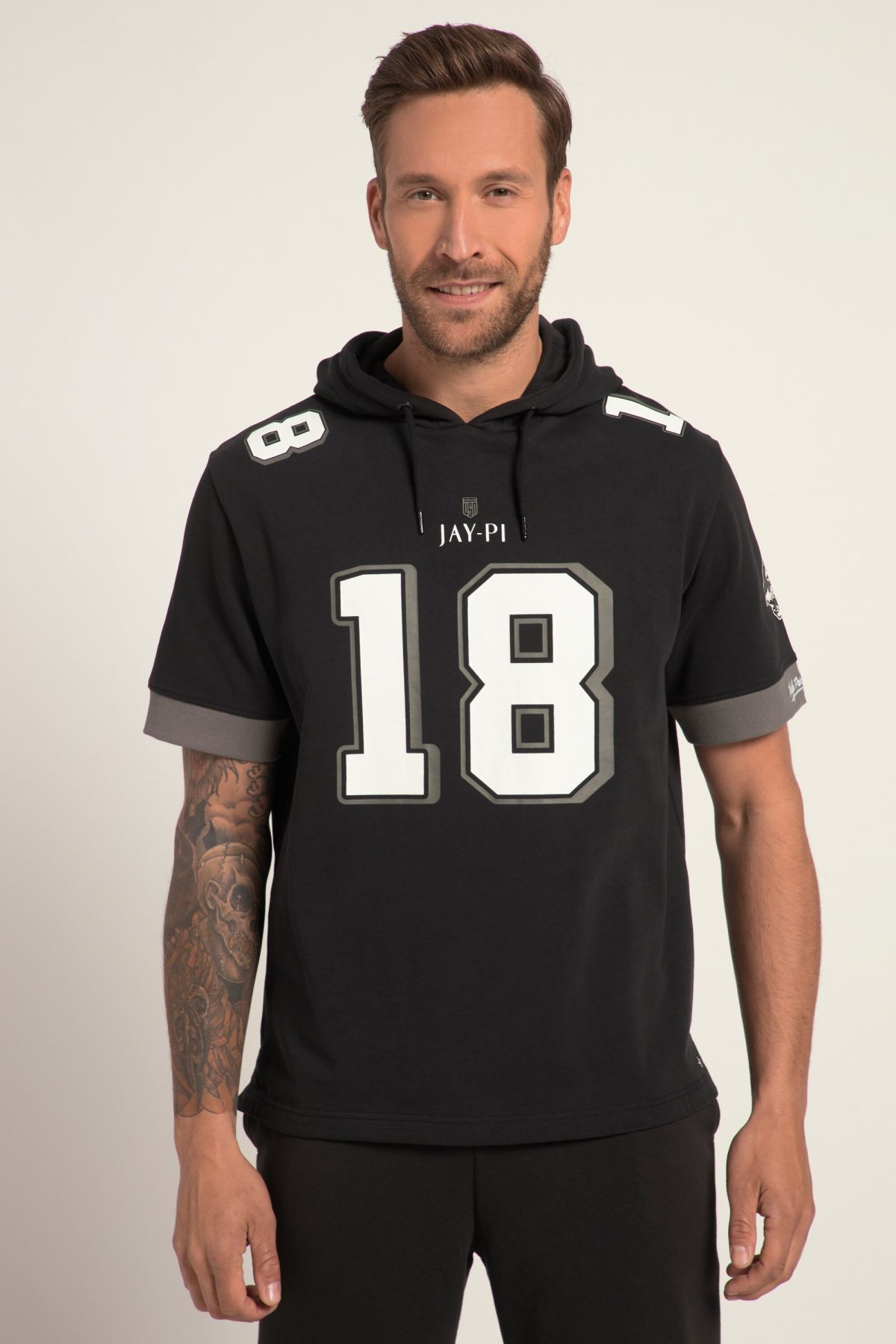 Sweat-shirt à capuche JAY-PI. Esprit football américain. Manches courtes, capuche et imprimé XL.