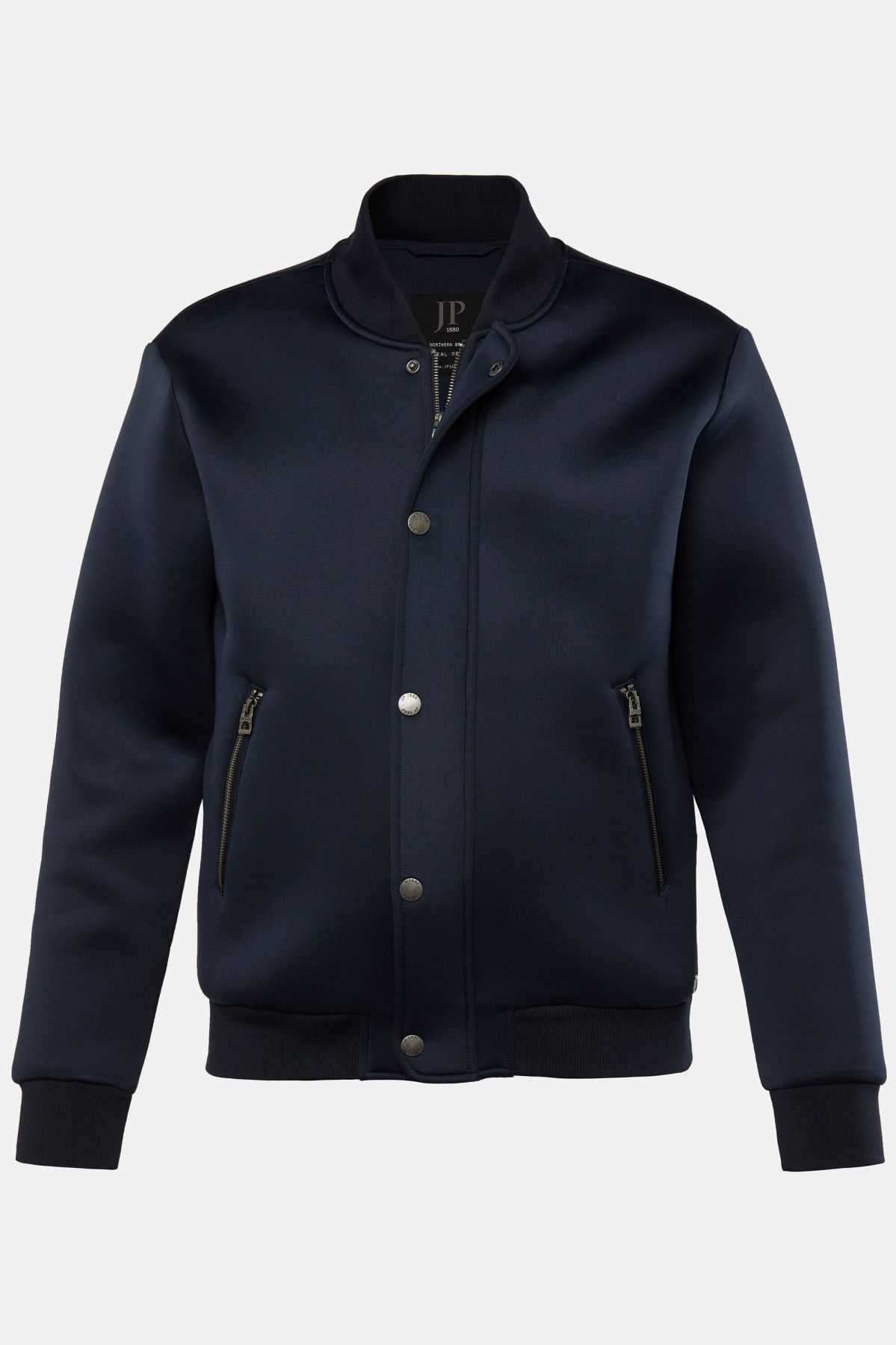 Tissu scuba, Style authentique, Col esprit blouson Teddy américain, Fermeture à glissière dissimulée, avec boutons-pression, Poches zippées, Long. selon taille env. 70-80 cm.