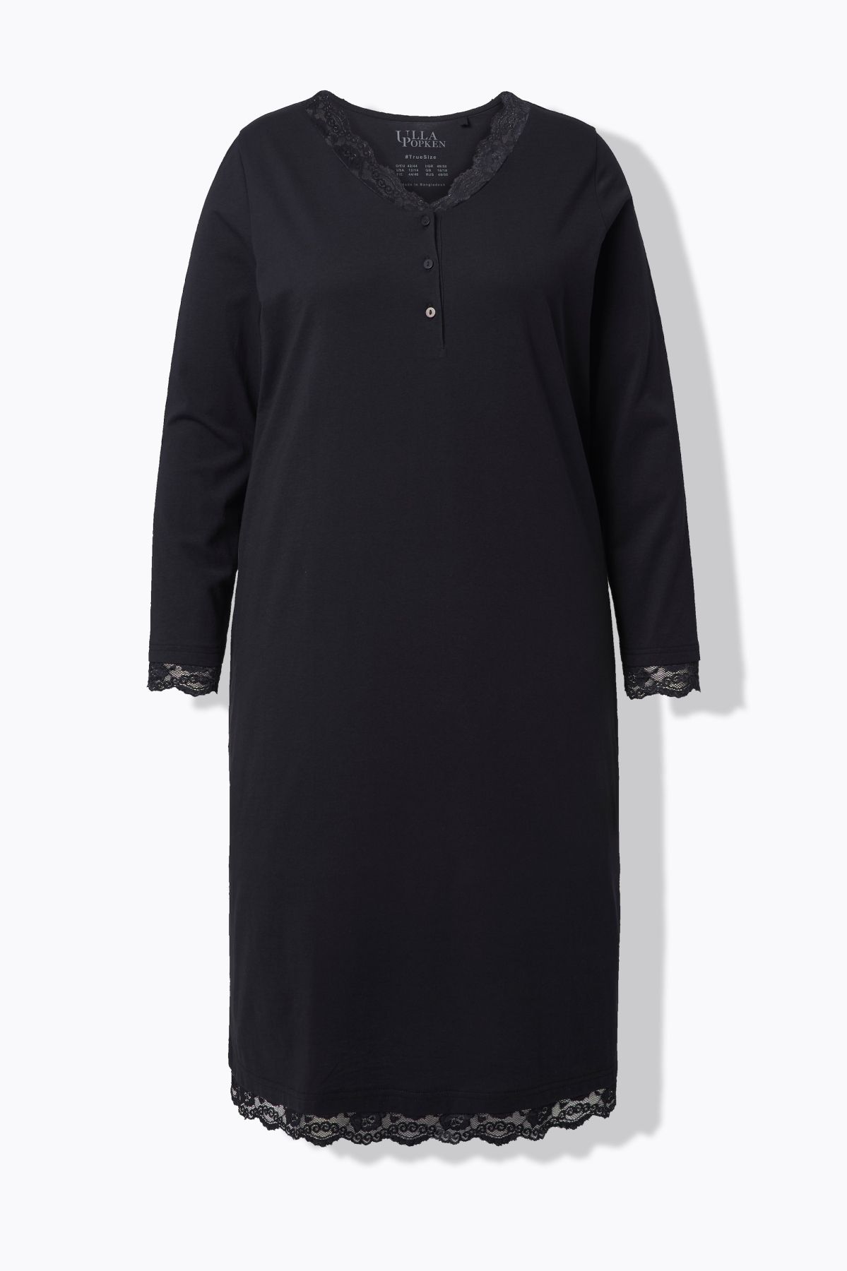 Chemise de nuit avec dentelle, décolleté en V, manches longues