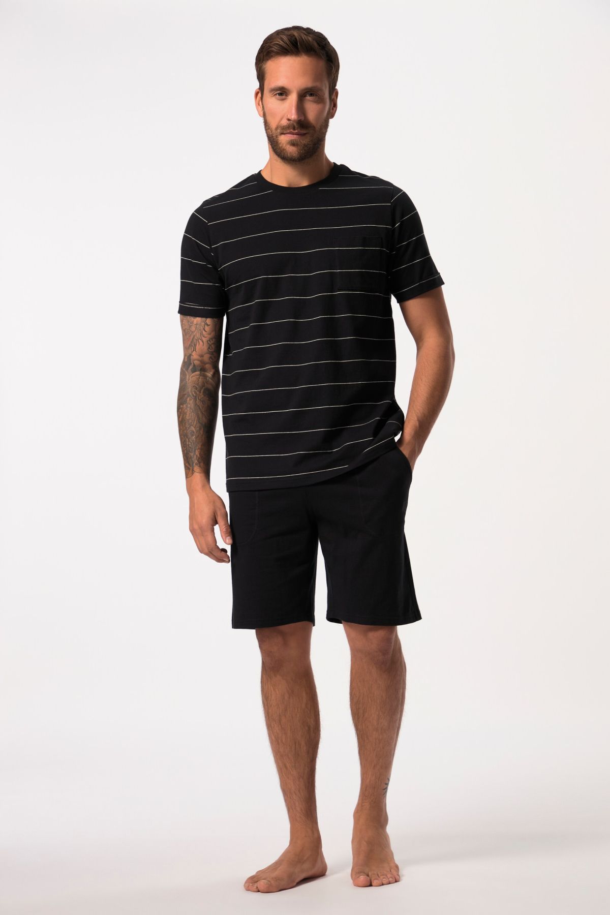 Coupe spéciale jusqu'au 8 XL, Pyjama court, deux pièces, T-shirt à rayures, Manches courtes, Short, Long. entrej. env. 74-86