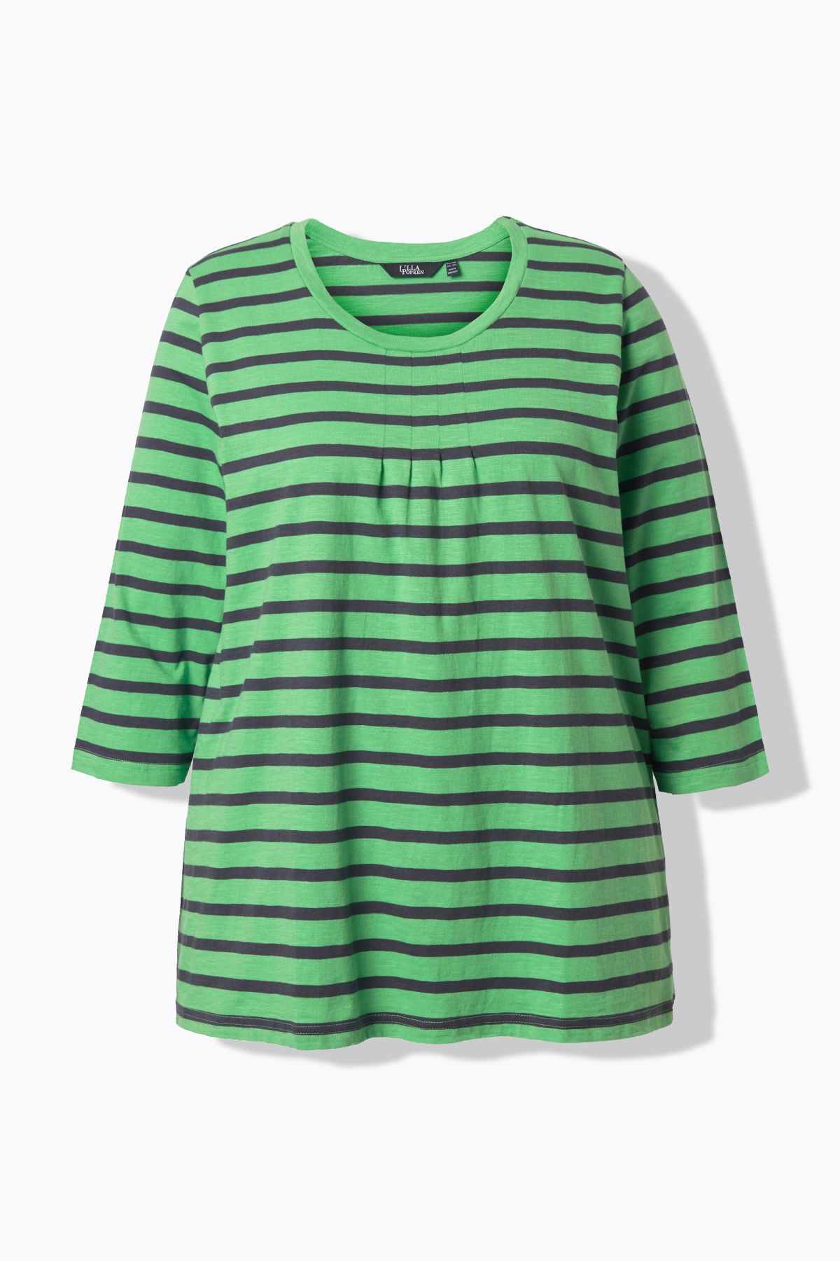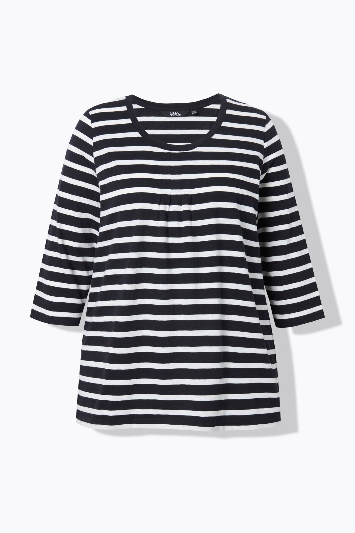 T-shirt rayé avec plis fantaisie, col rond et manches 3/4, coupe évasée